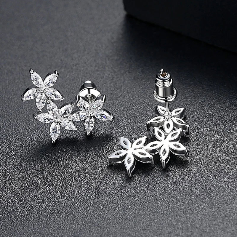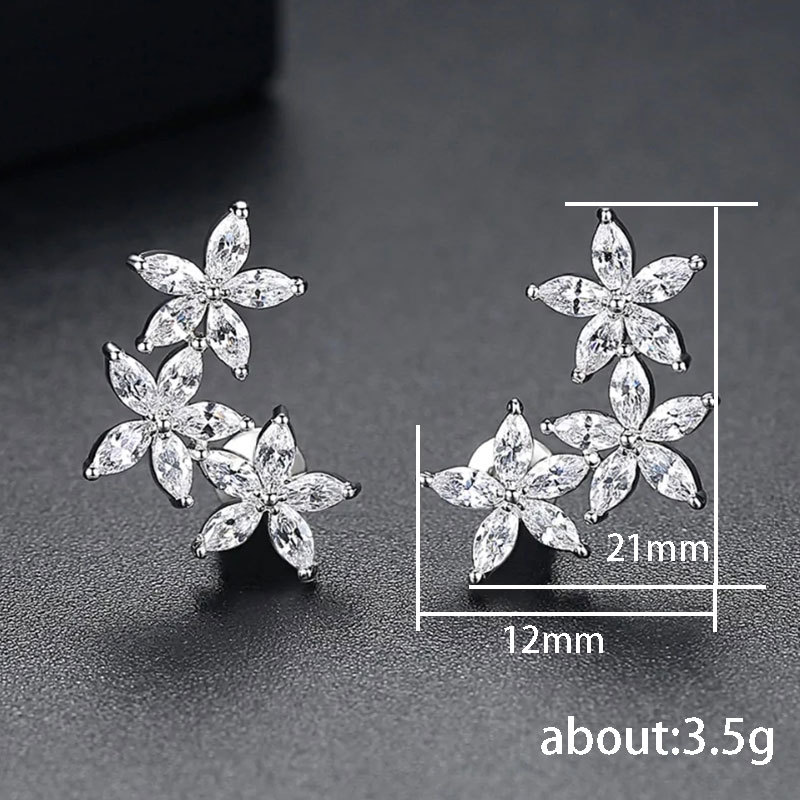 Classic retro full inlaid AAA horse eye zircon flower earrings female creative five petal flower student earrings hot sale