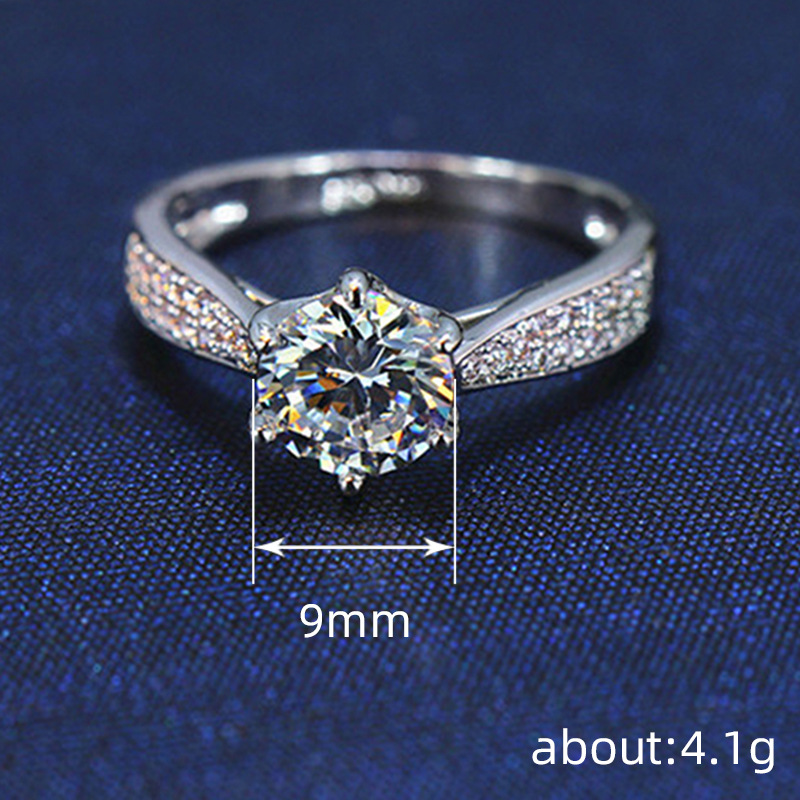 Micro-inlaid celebrity style classic all-match popular ring six-claw zircon wedding ring European and American style light luxury ring