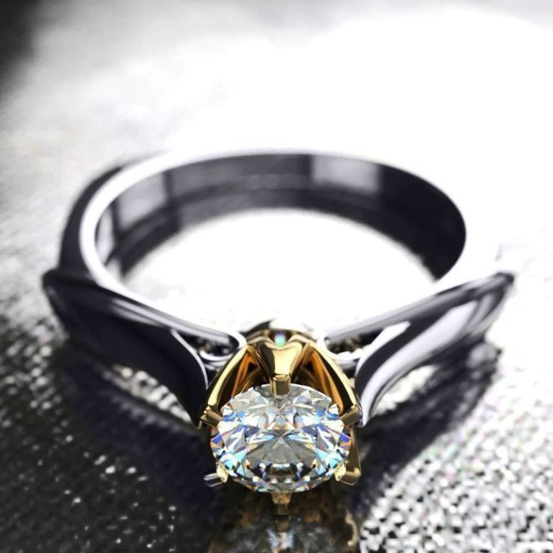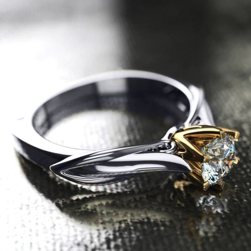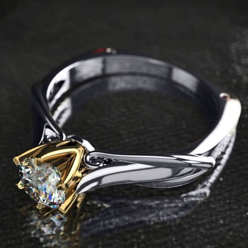 Classic four-claw imitation zircon micro-inlaid ring women's double row two-color twist arm ring engagement wedding ring women