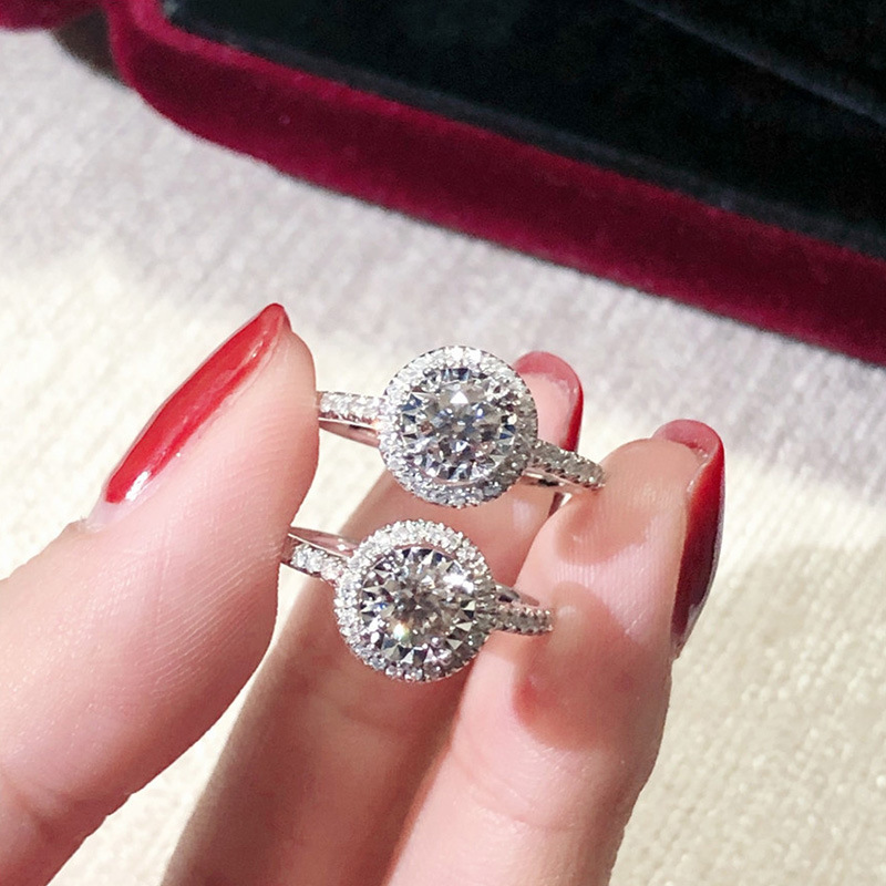 Micro-inlaid celebrity style classic all-match popular ring six-claw zircon wedding ring European and American style light luxury ring