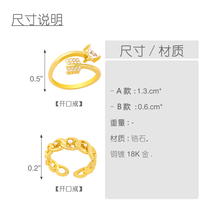 Clearance 2022 New Accessories Creative Chain Open Ring Personalized Arrow Diamond Ring rij89