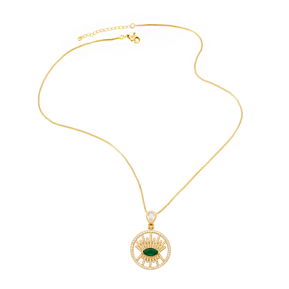 Clearance 2023 Autumn and Winter Cross Necklace Fashion Light Luxury Full Diamond Emerald Zircon Eye Necklace nkb567