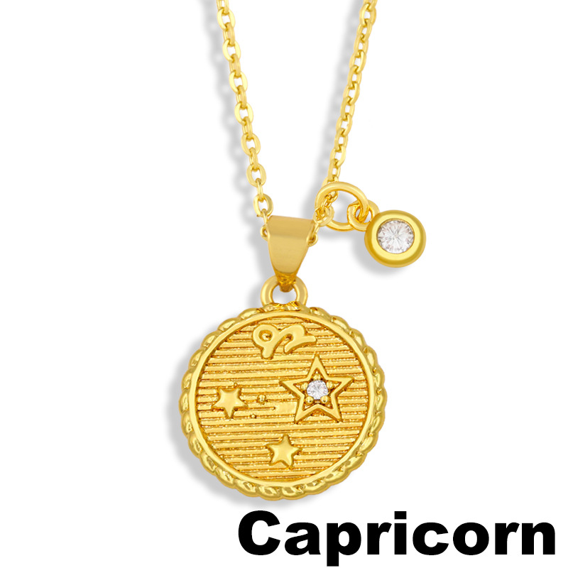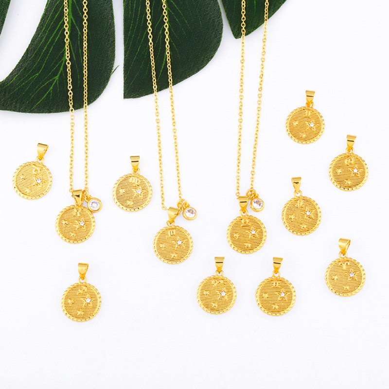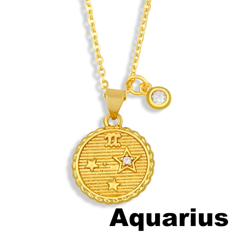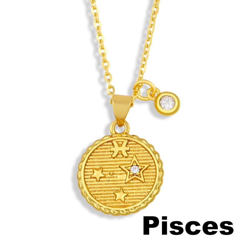 Clearance 2023 European and American 12 constellations pendant necklace style round diamond girlfriend clavicle chain nkv18