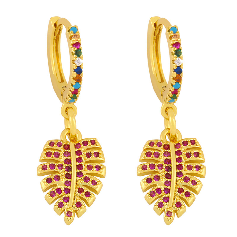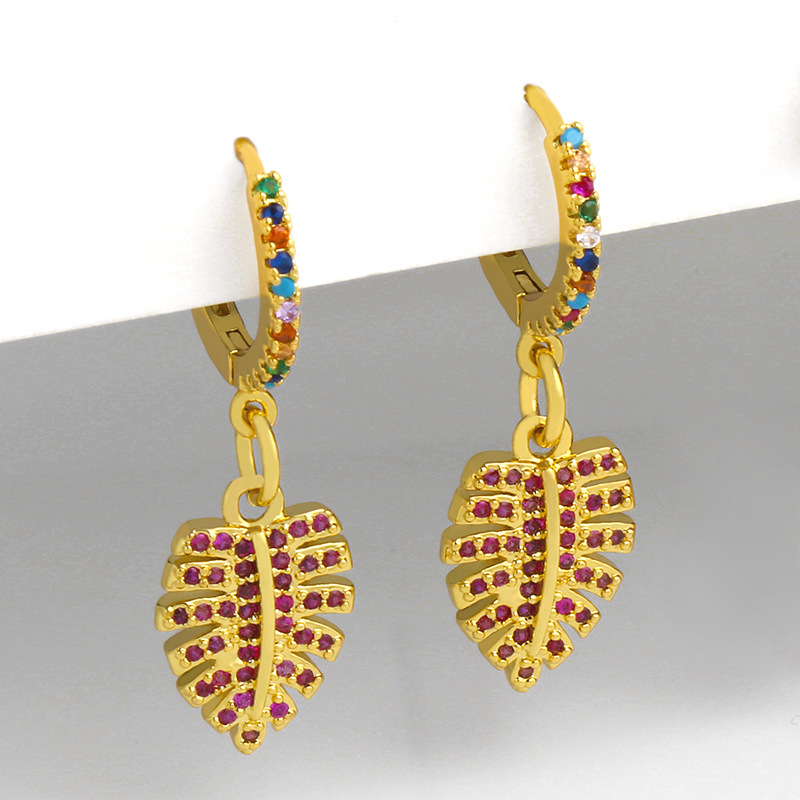 Clearance 2023 European and American earrings creative leaf micro-inlaid colored zircon earrings net celebrity earrings earrings female erv05