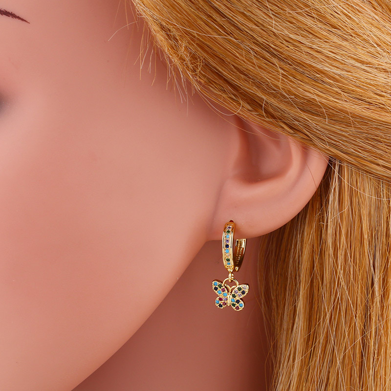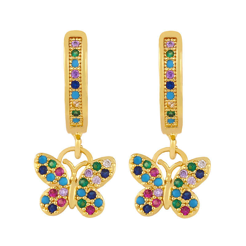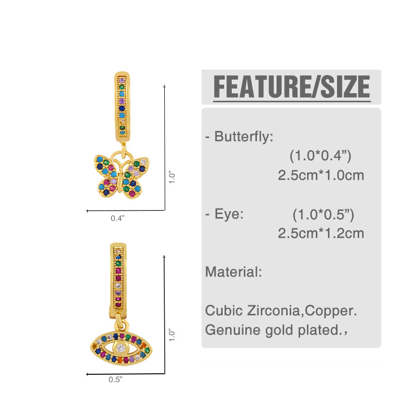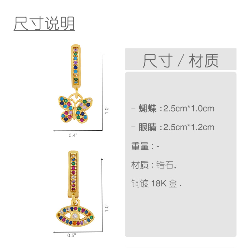 Clearance 2023 Fashion Copper Micro-inlaid Zircon Earrings Creative Butterfly Devil's Eye Earrings eru75
