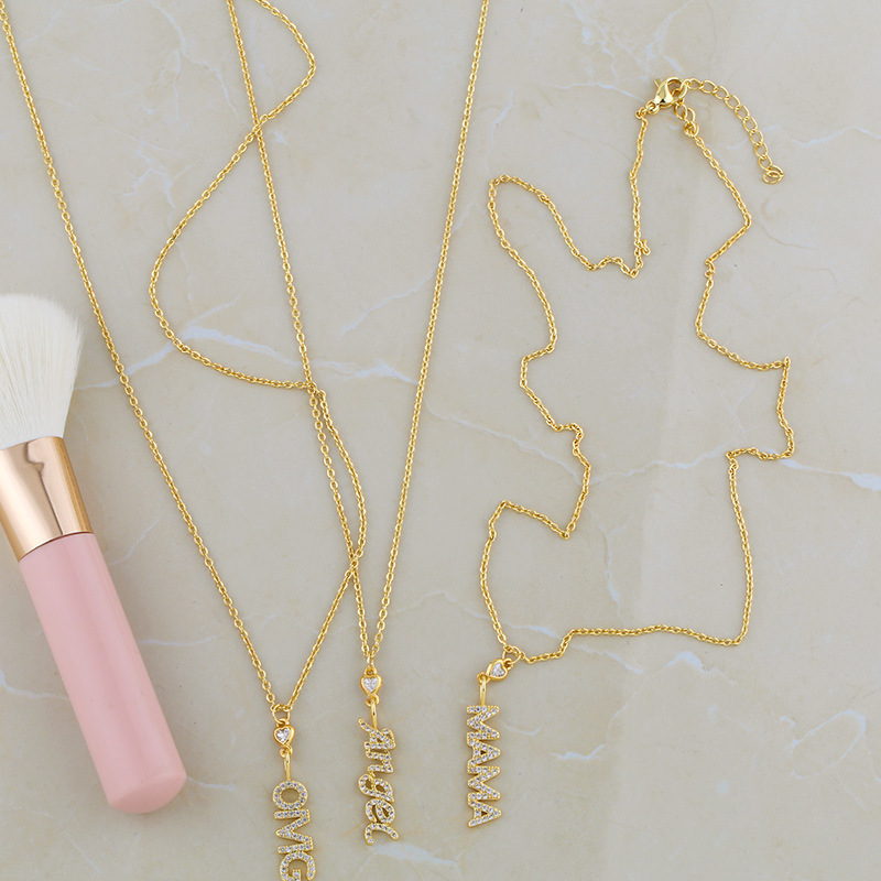 Letter necklace European and American new color zircon necklace with diamond surname English AZ letter necklace nkp25