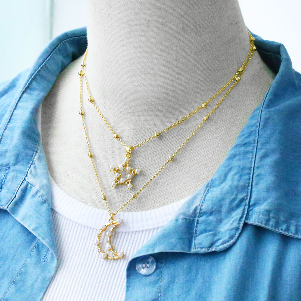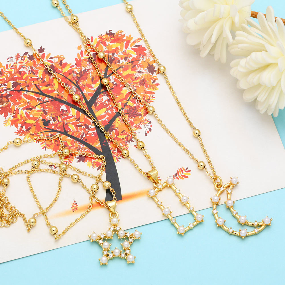 Clearance 2023 Spring and Summer All-match Pearl Zircon Hollow Moon Pentagram Rectangular Necklace Women nkb720