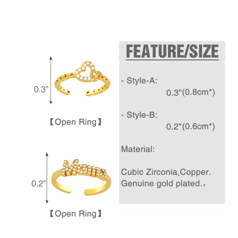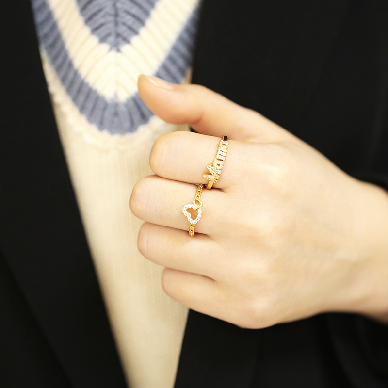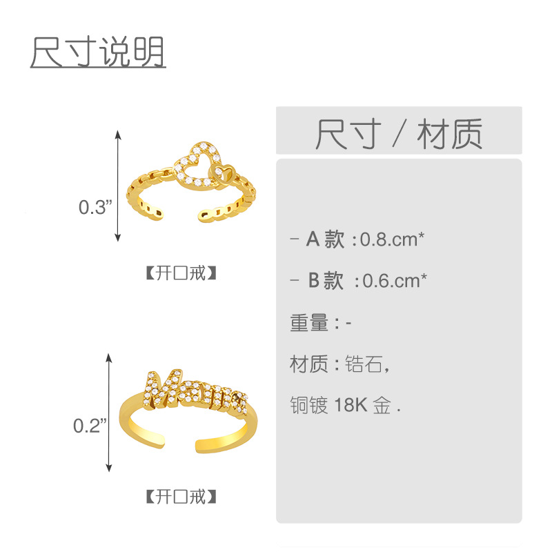 Clearance 2024 European and American new love ring network celebrity tide letter mama personality open index finger ring rik48