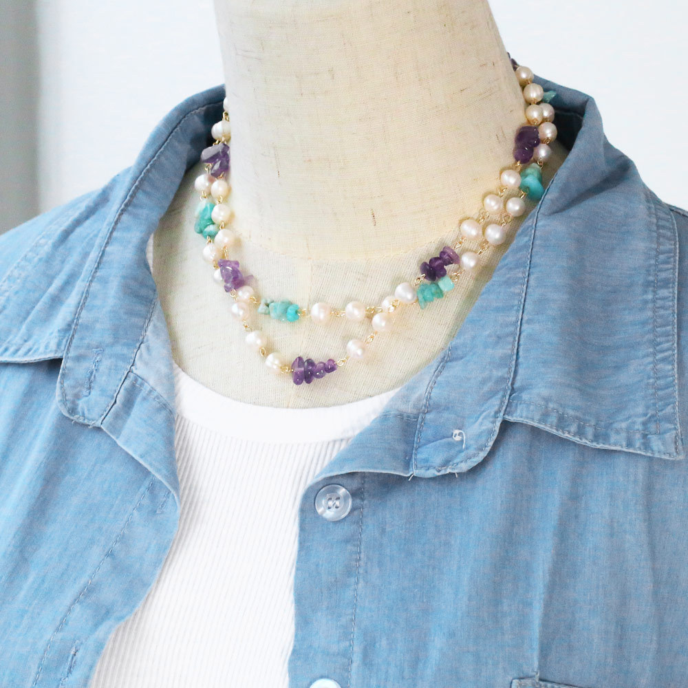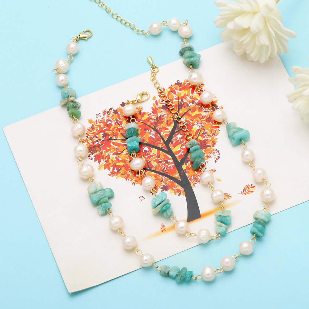 Clearance 2024 European and American style niche high-end gravel pearl necklace bracelet jewelry set nkb511
