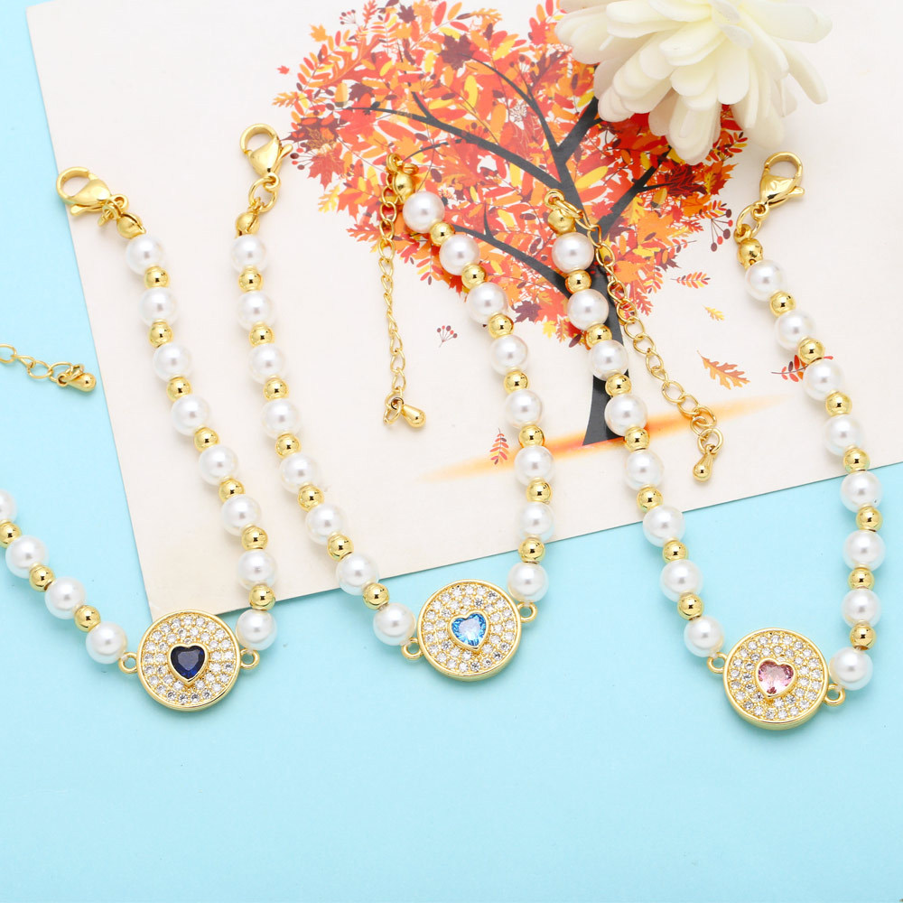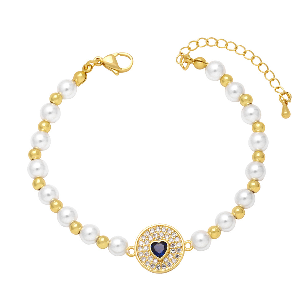 Clearance 2024 new pearl bracelet women's trendy niche design full diamond zircon round card love bracelet brj98
