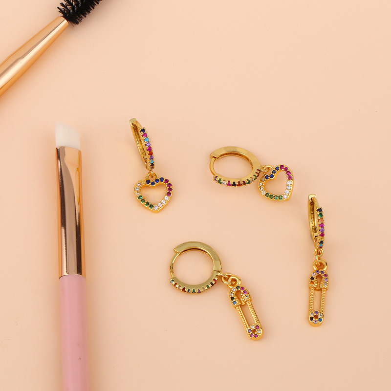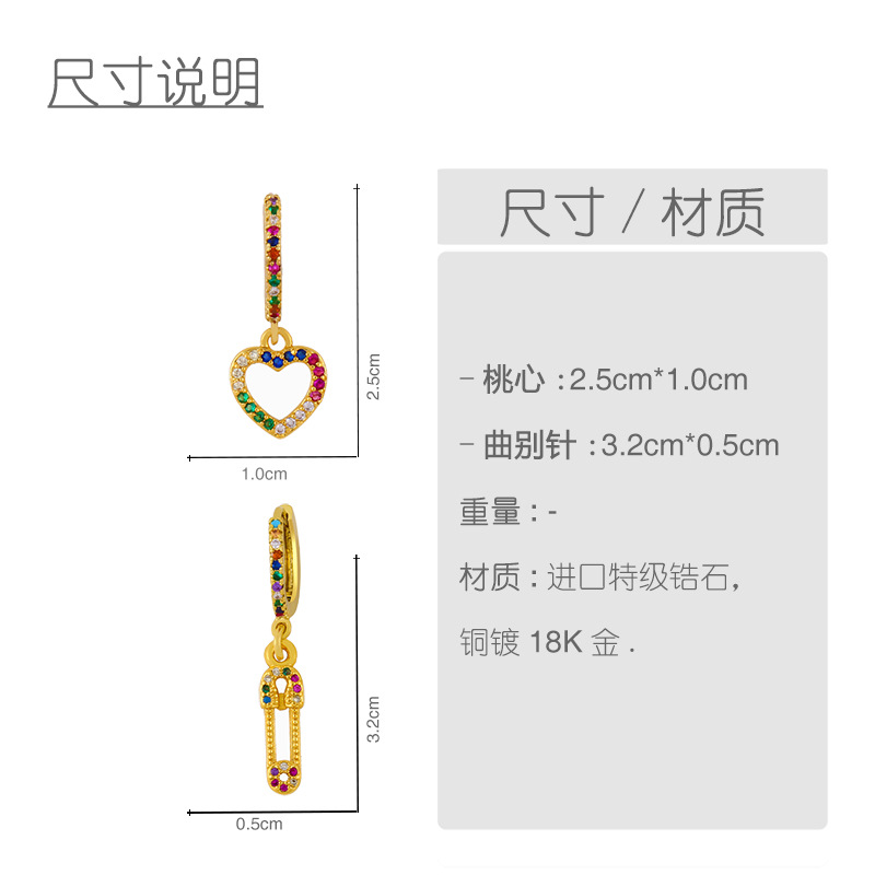 Clearance 2024 pin earrings female niche design Korean temperament love heart earrings zircon earrings ers98