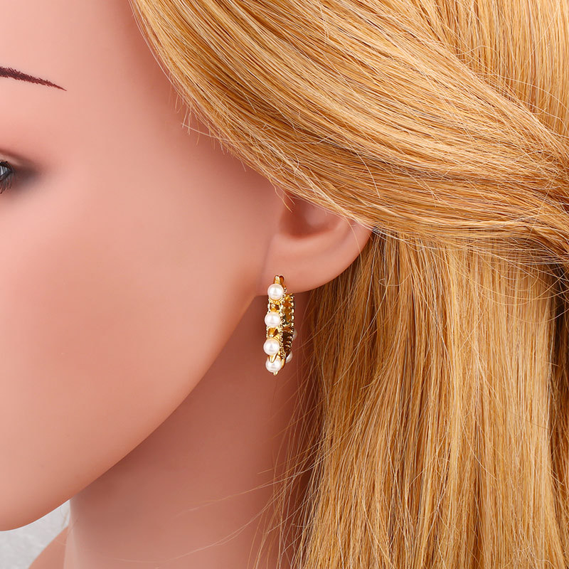Clearance 2024 Temperament Pearl Earrings European and American Jewelry Personality Cold Style Diamond Earrings Earrings eru61 Geometry
