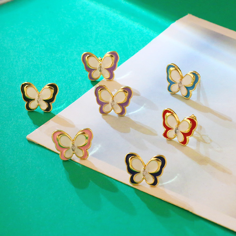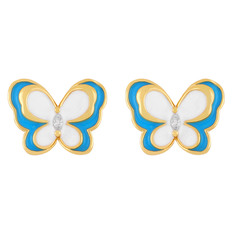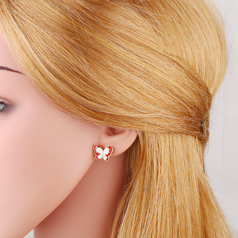Clearance 2024 trendy earrings for women Internet celebrity high-end color oil-studded diamond butterfly earrings erx56