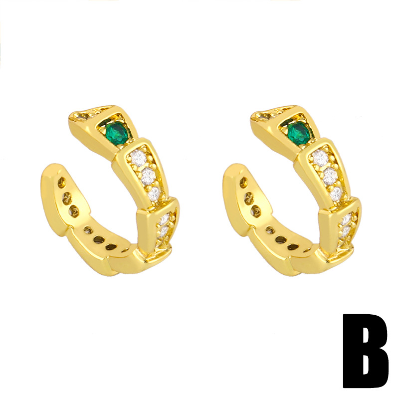 European and American simple fashion color zircon earrings niche design ear clip 18k gold plated earrings eru52