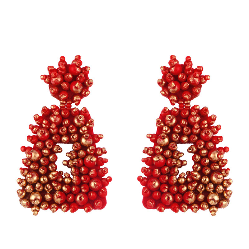 Clearance Aosheng original European and American exaggerated metal color rice bead earrings trendy female cold style earrings earrings female erq94