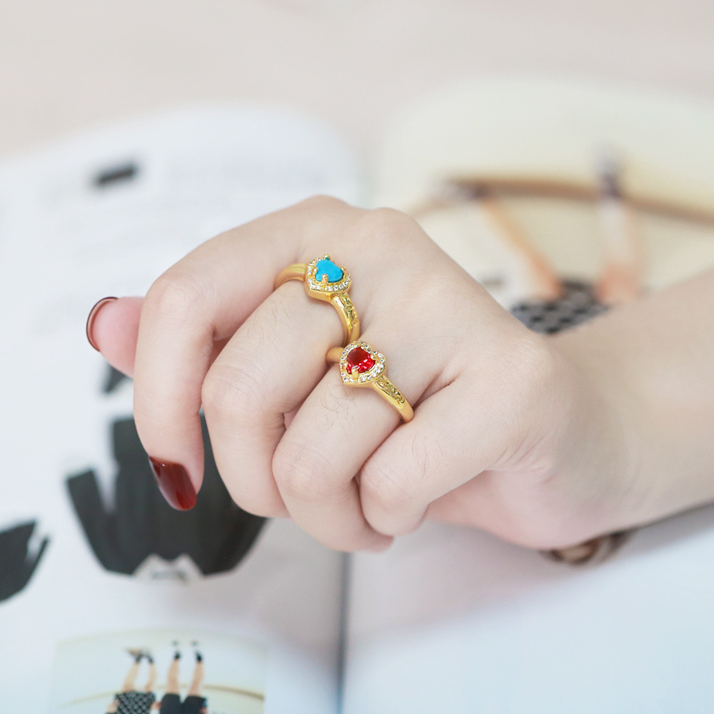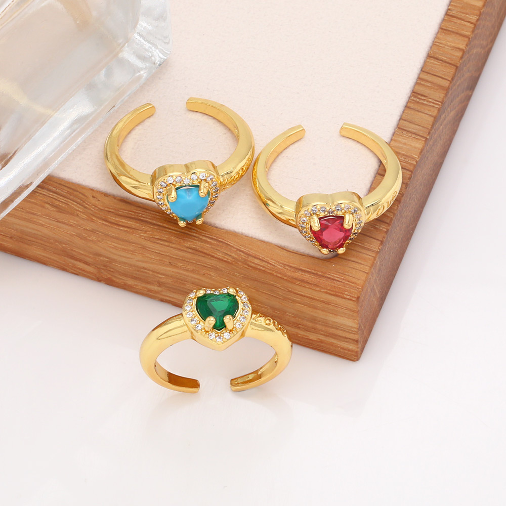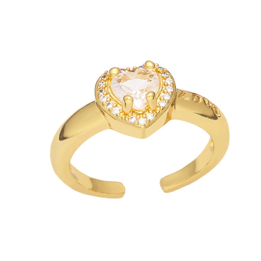 Clearance AS European and American jewelry French retro love zircon ring fashion temperament open ring riq56