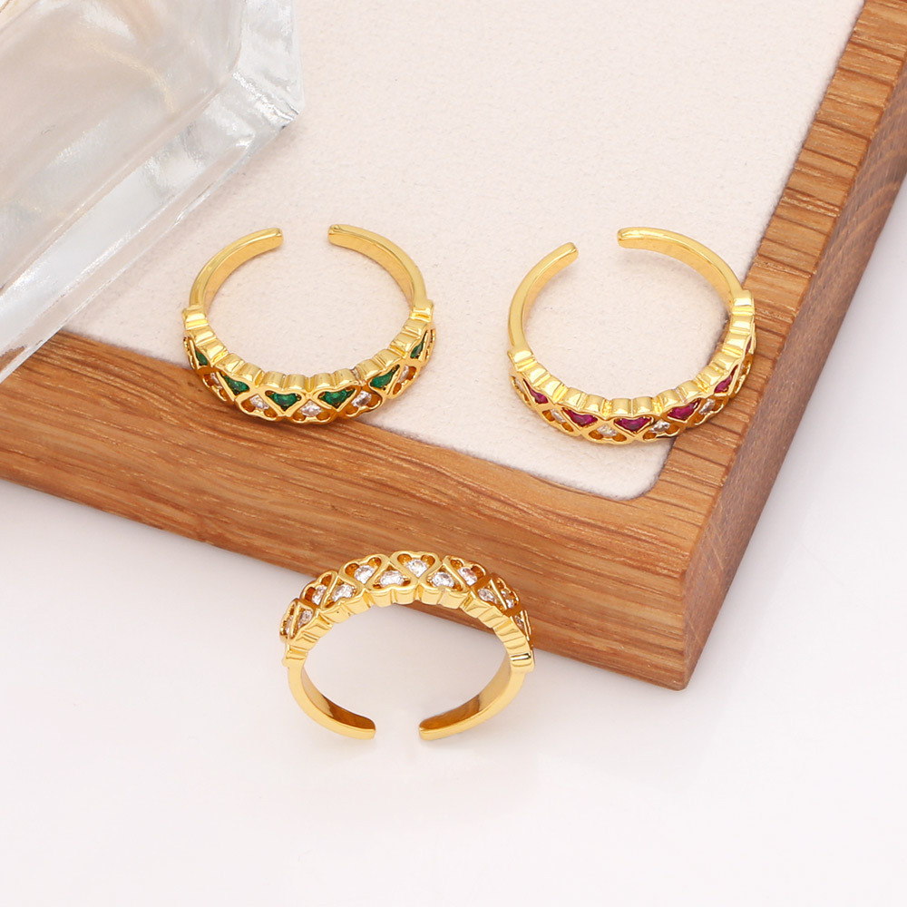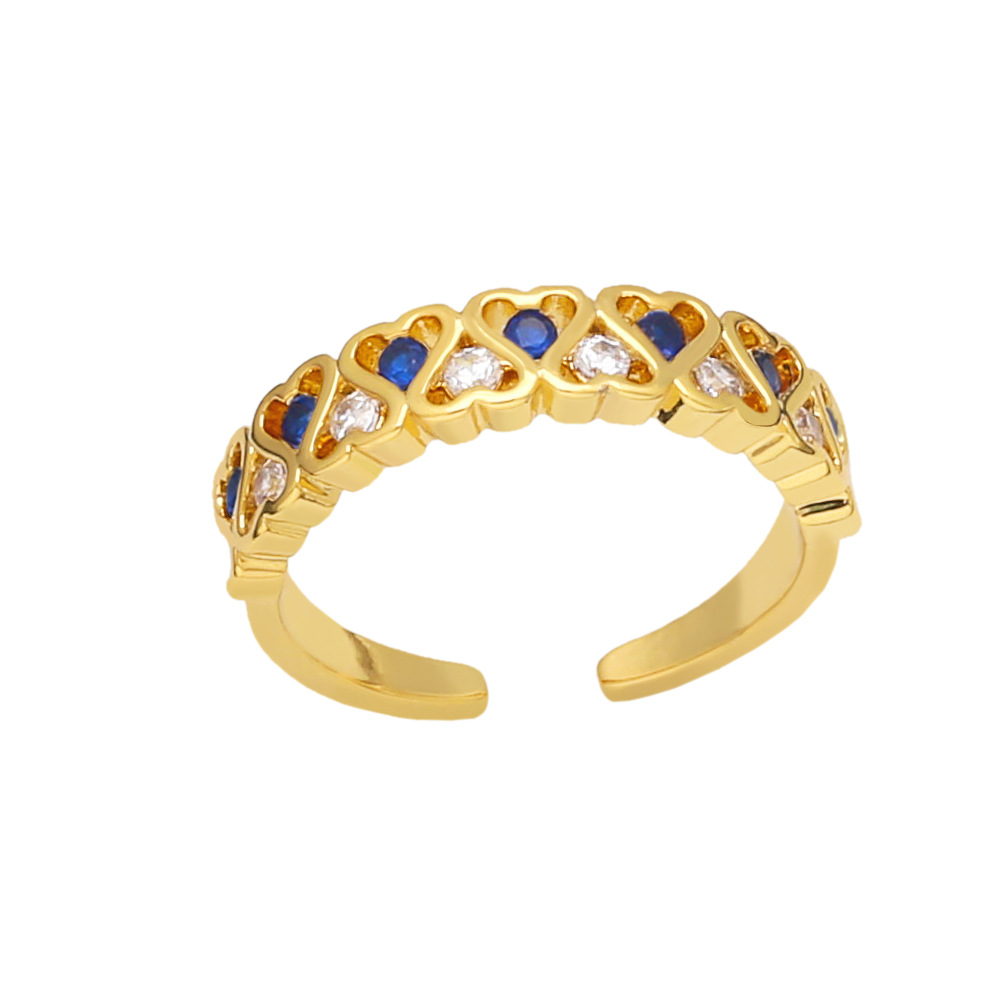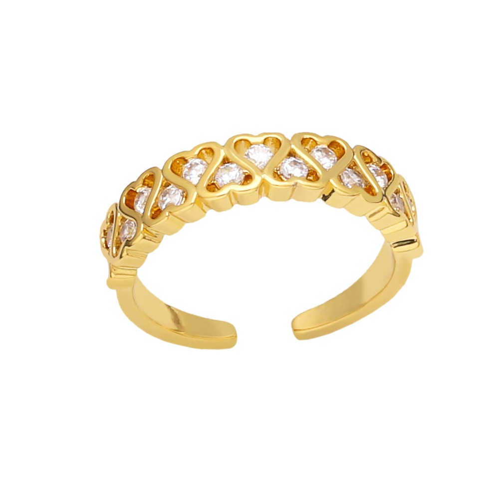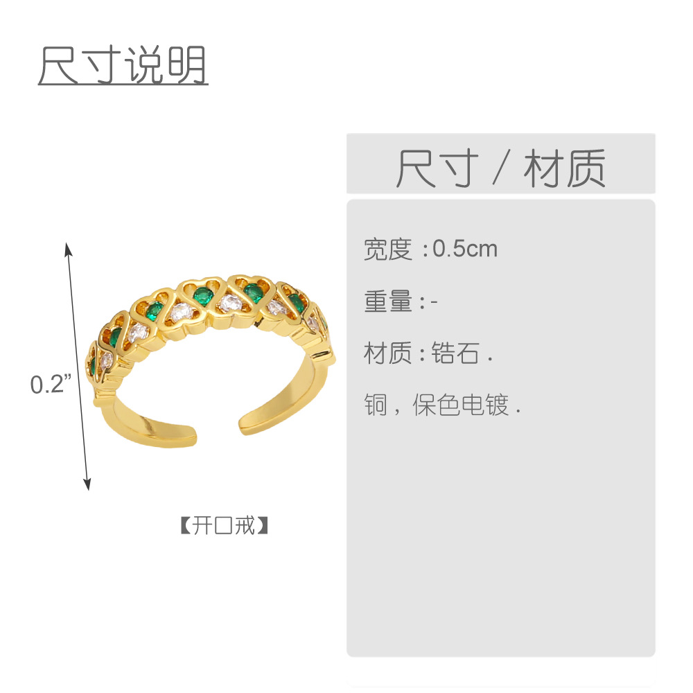 Clearance AS European and American new love ring female fashion double row diamond open heart-shaped ring riq20