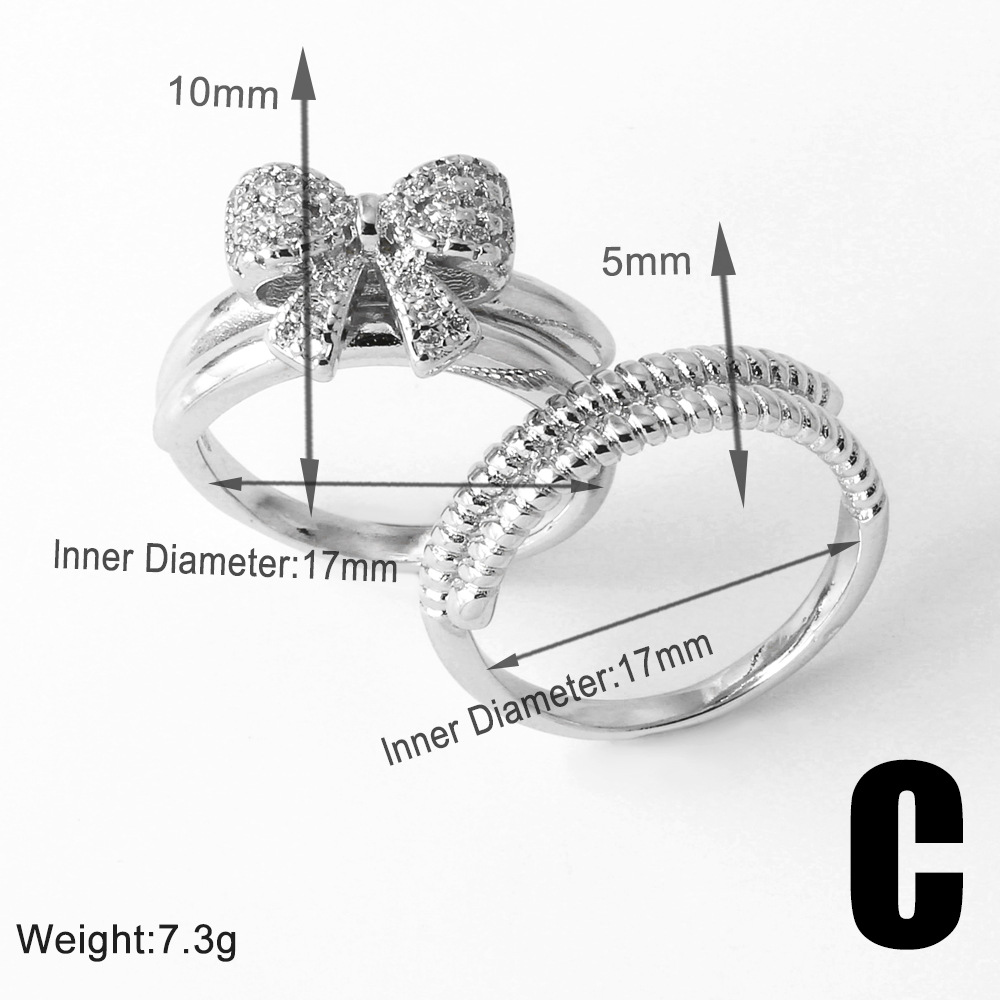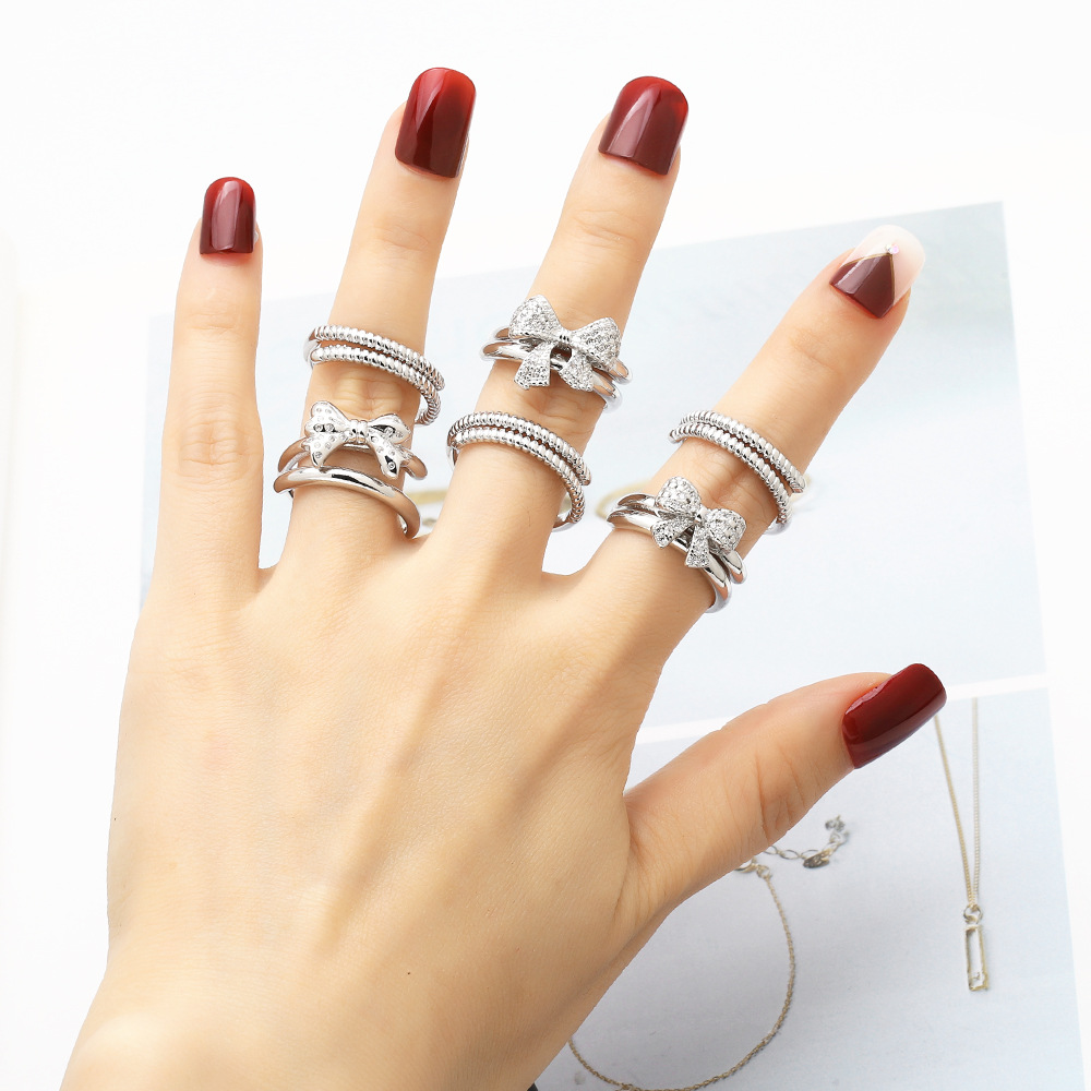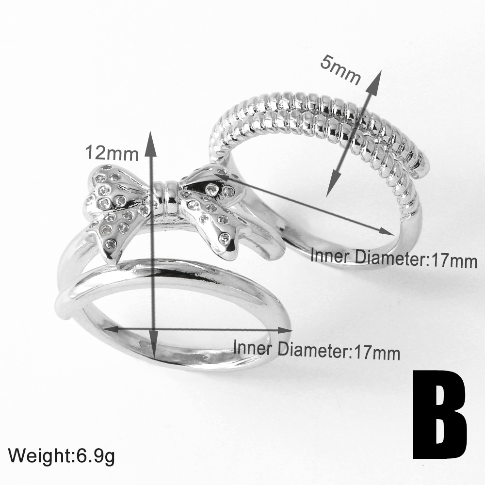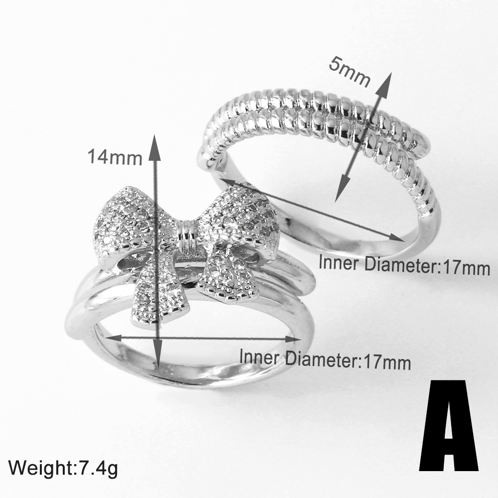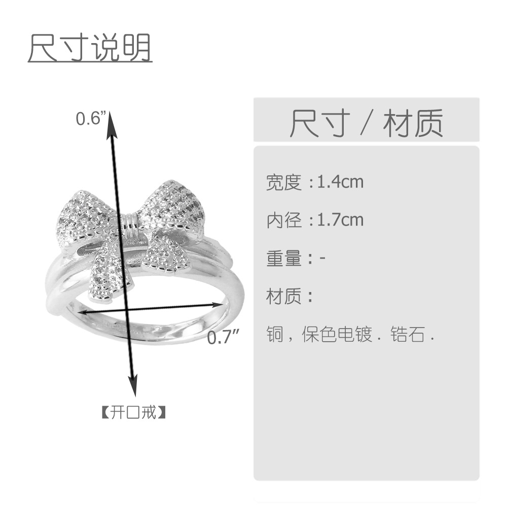 Clearance AS jewelry bow double ring gold-plated zircon open ring rik50