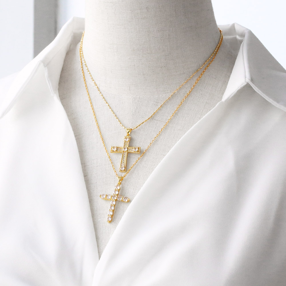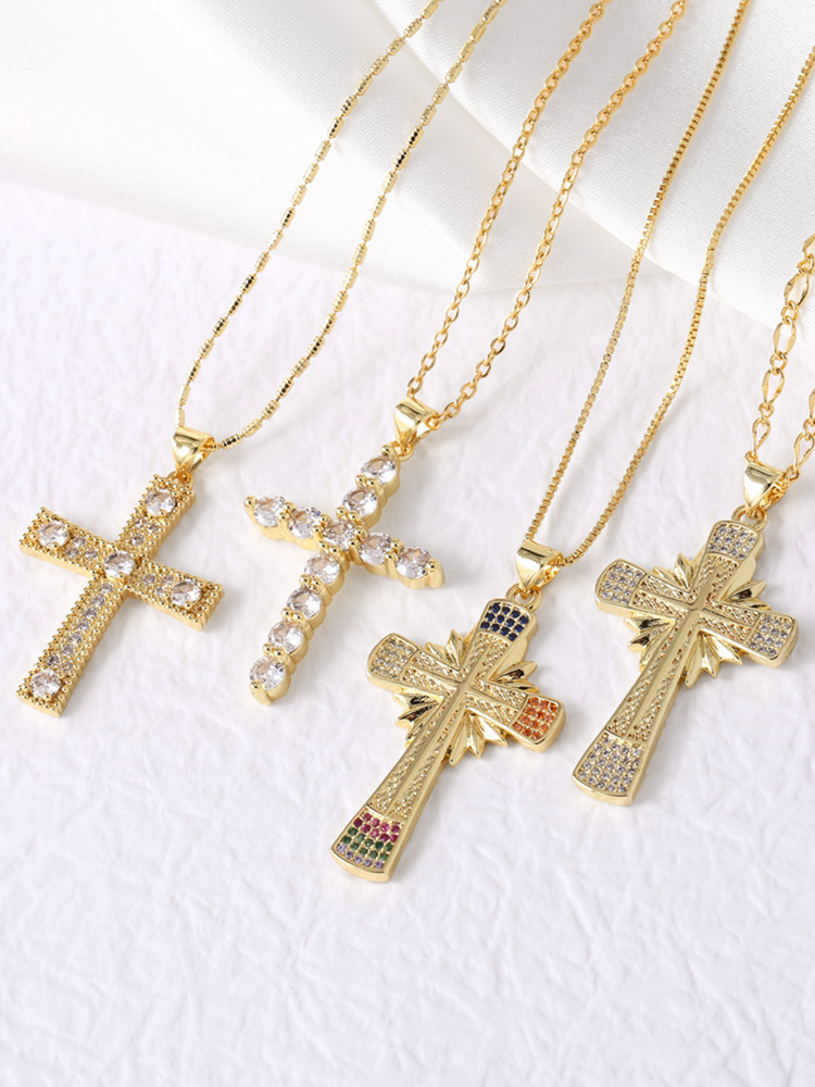 Clearance AS jewelry cross pendant necklace European and American gold-plated full zircon clavicle chain nkw51