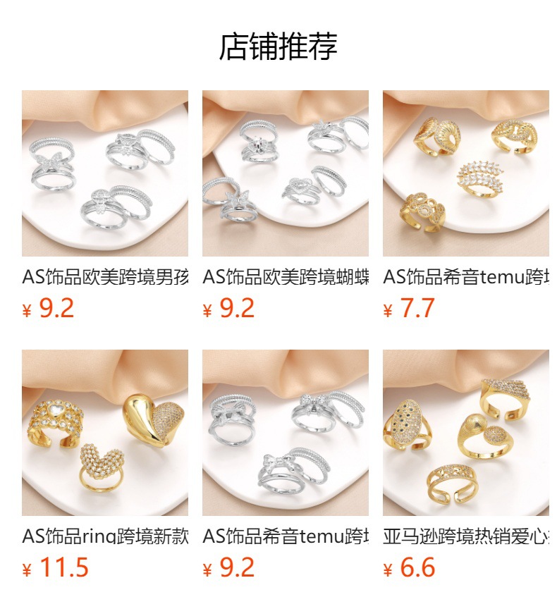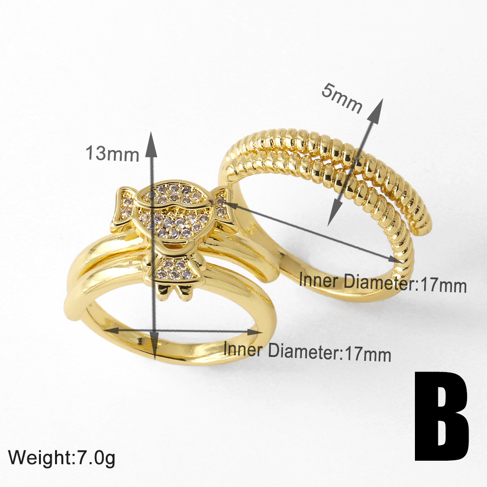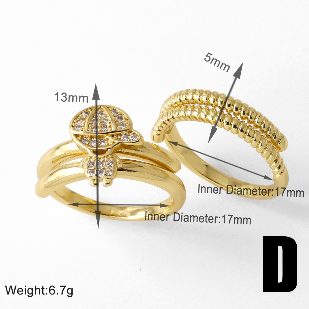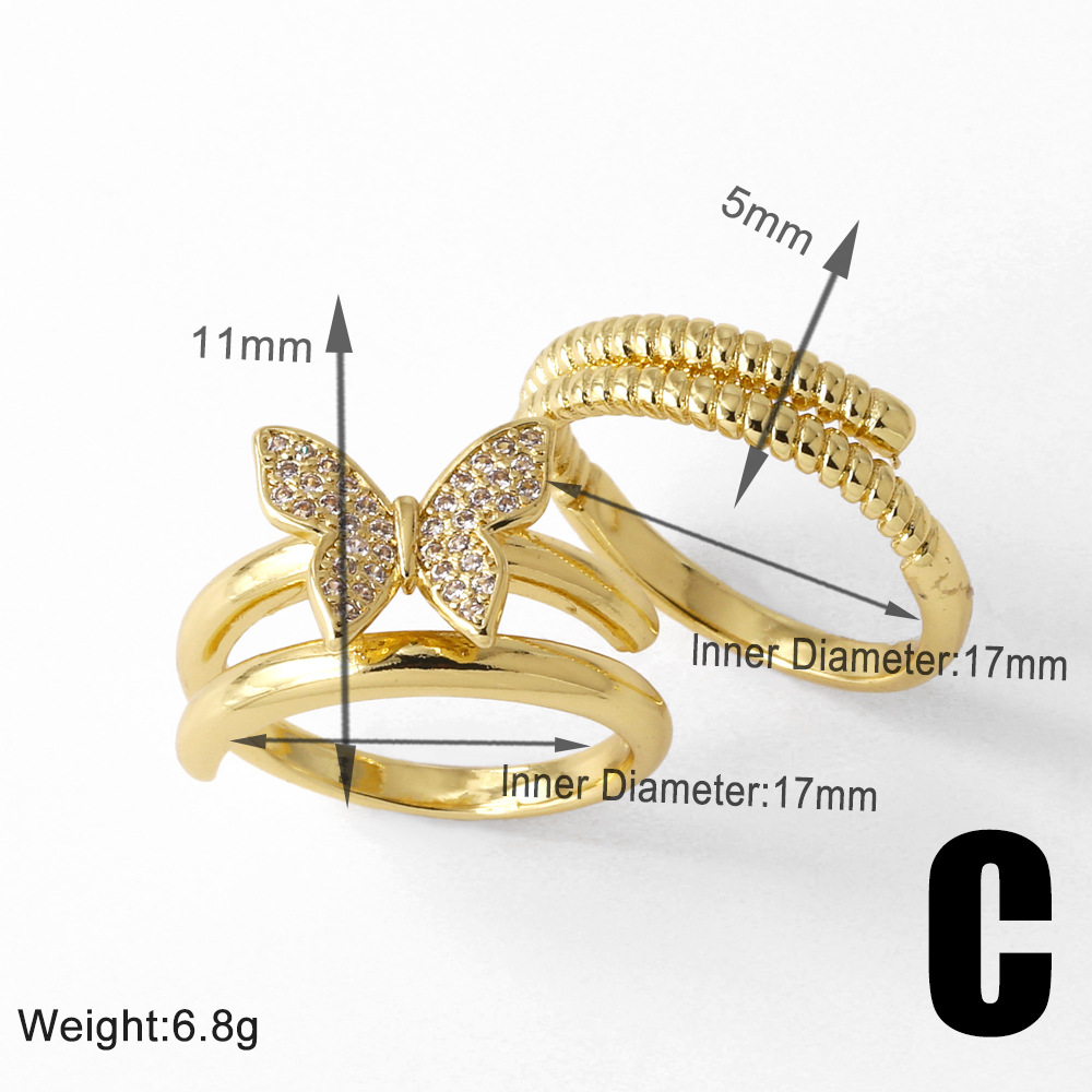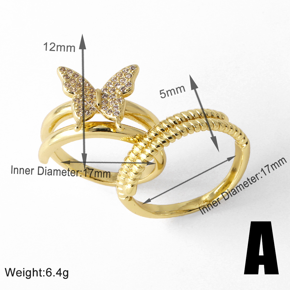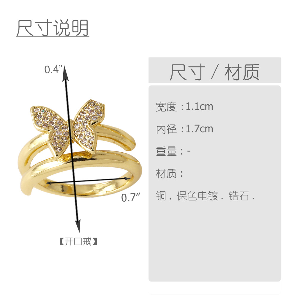 Clearance AS jewelry European and American butterfly double-layer ring copper plated 18k gold zircon boy girl ring rim84