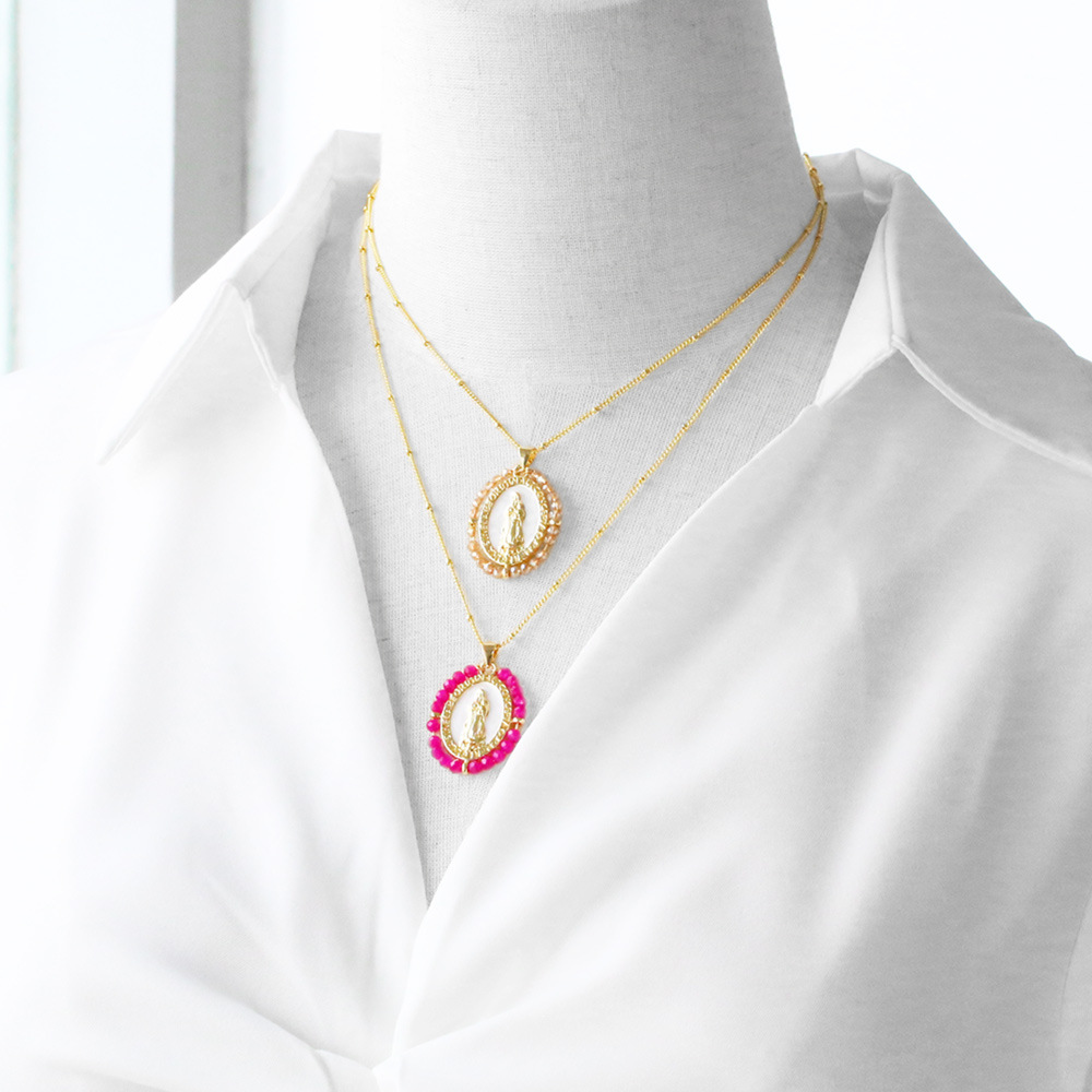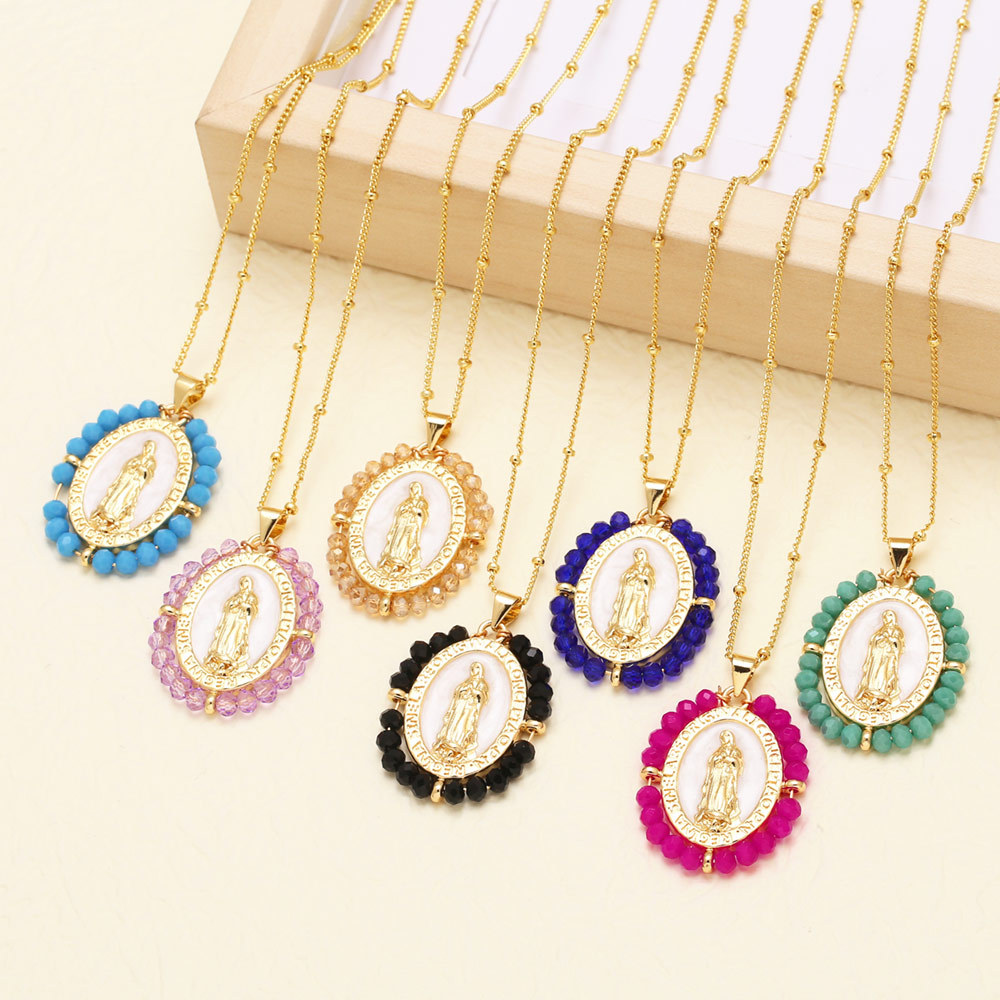 Clearance AS jewelry European and American color Madonna pendant necklace accessories female copper plated 18k gold clavicle chain nku49