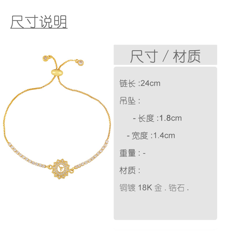 AS jewelry full zirconium 26 English letters bracelet copper plated real gold adjustment jewelry brm62
