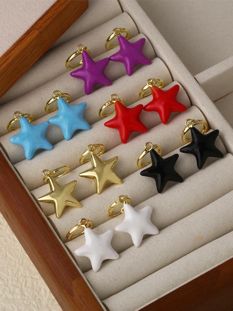Clearance AS jewelry European and American five-pointed star pendant dripping copper 18k gold-plated women's earrings earrings era108