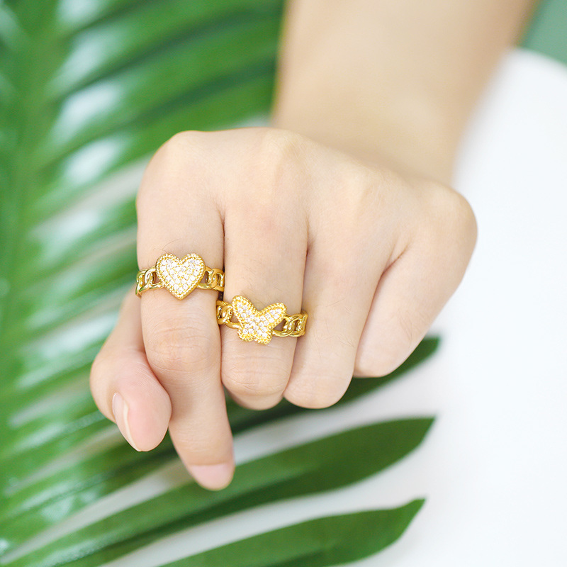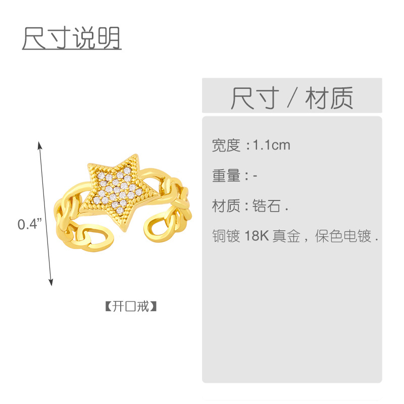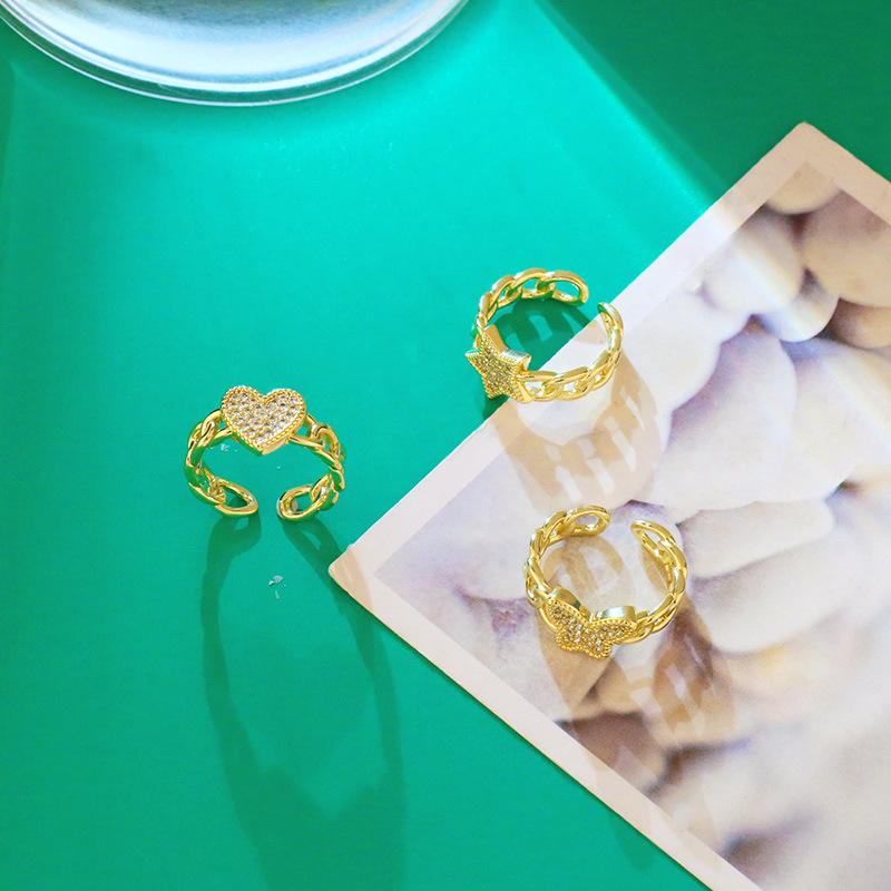 Clearance AS jewelry European and American love index finger ring micro inlaid zircon female butterfly five-pointed star chain ring rim31