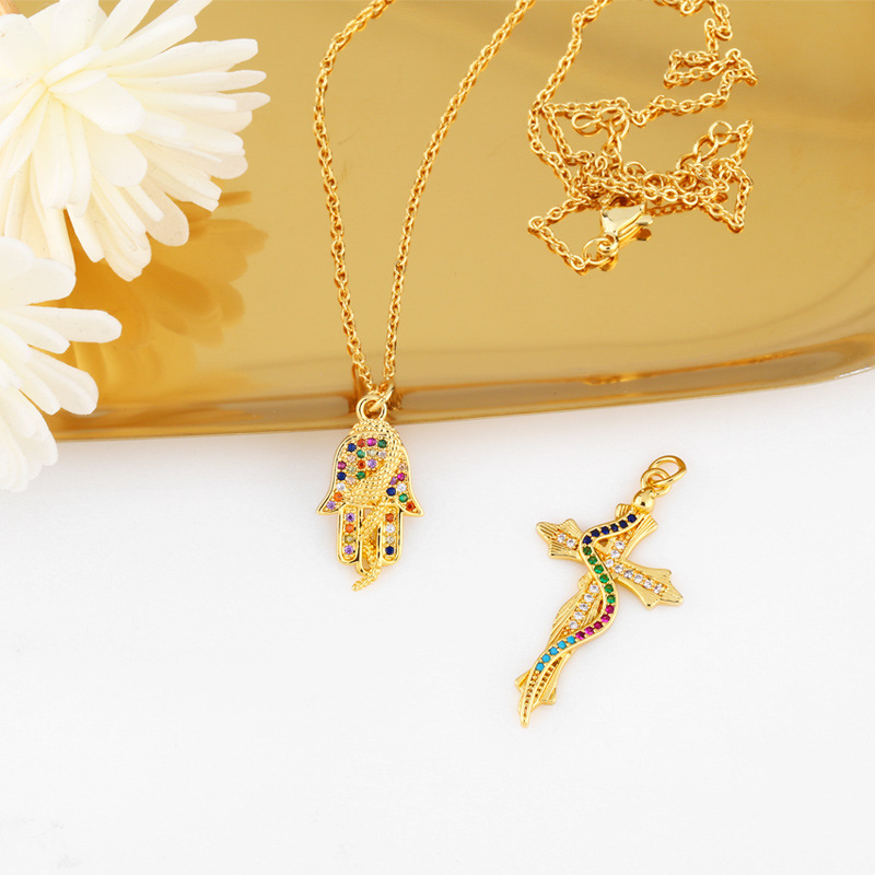 Clearance AS jewelry European and American personality snake cross necklace inlaid with colored diamond palm pendant wholesale nku09