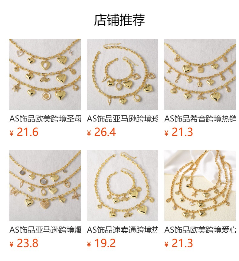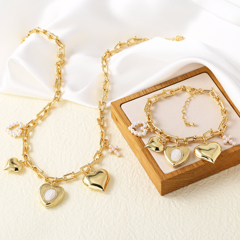 Clearance AS jewelry European and American smooth pearl heart cross U-shaped necklace bracelet set female nka012
