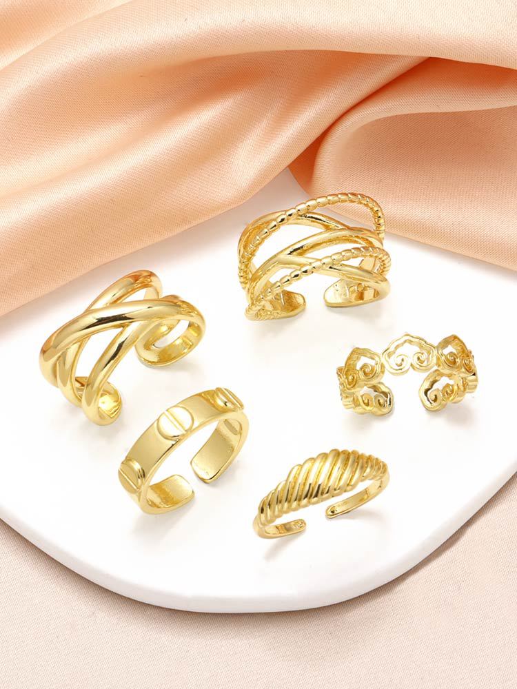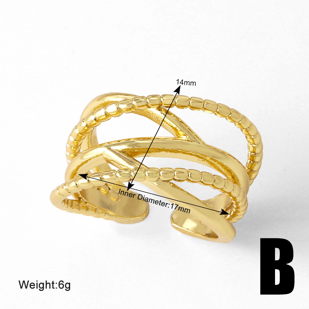 Clearance AS jewelry European and American style cross irregular ring female copper plated real gold open ring rih43