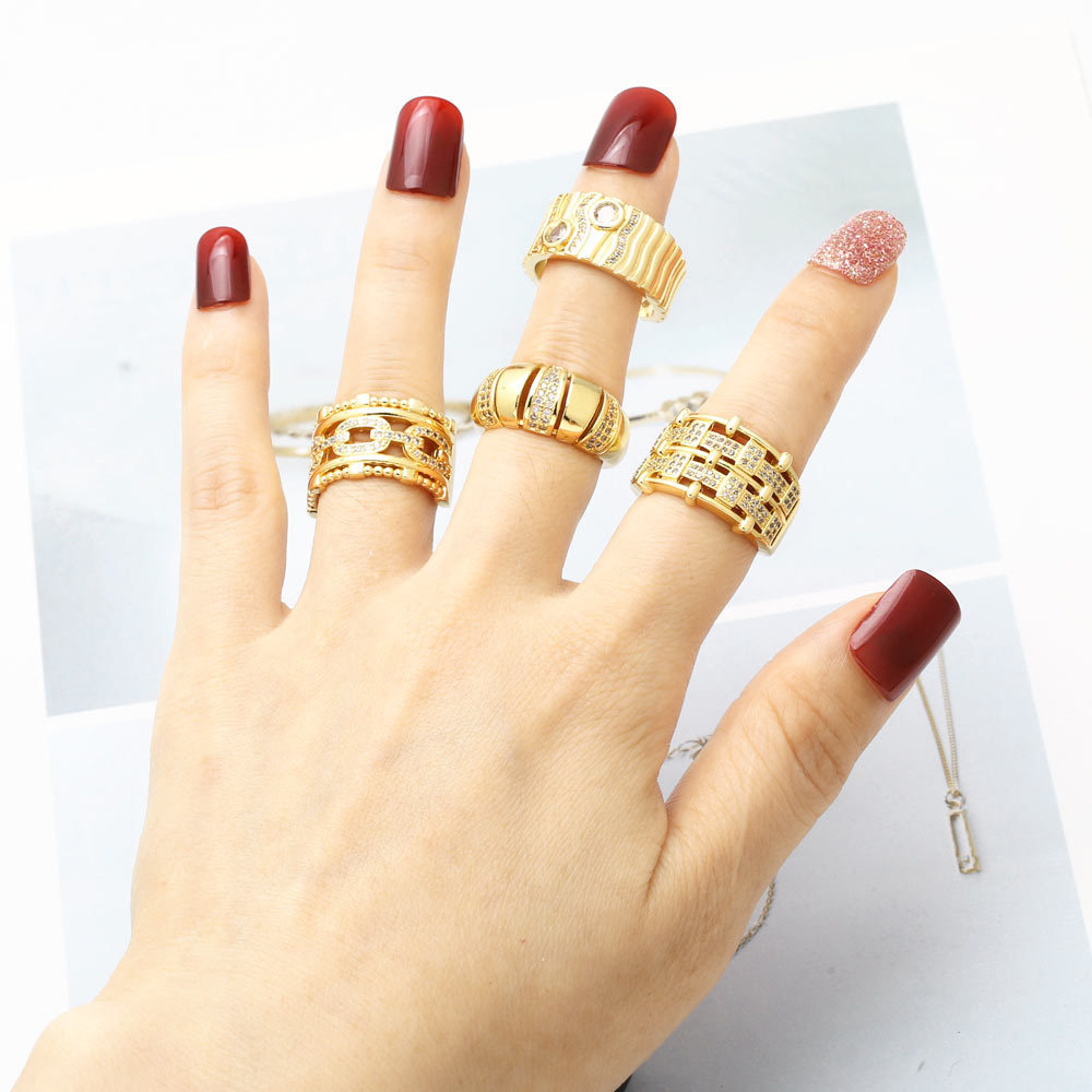 European and American luxury design ring fashionable temperament horse eye zircon ring multi-layer hollow design index finger ring