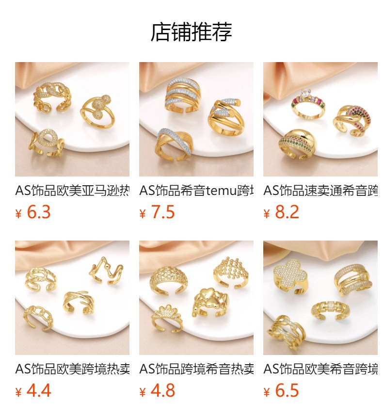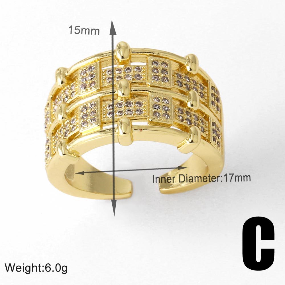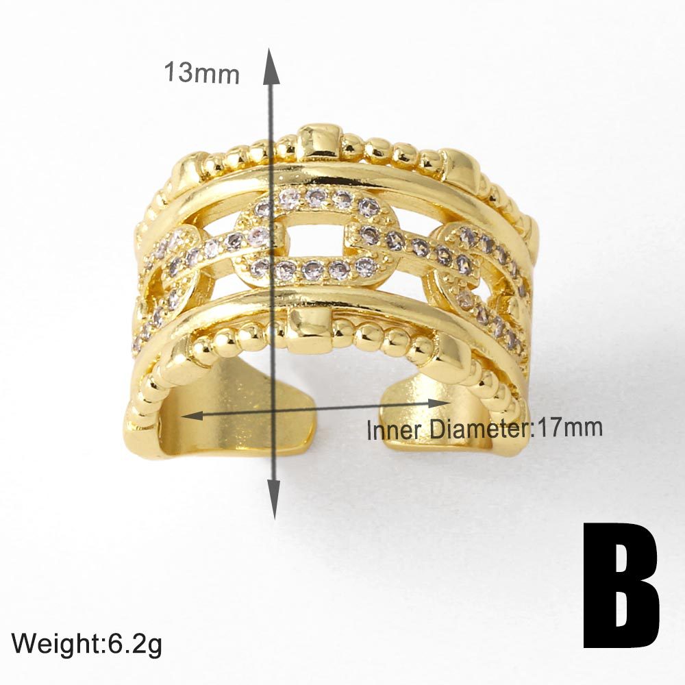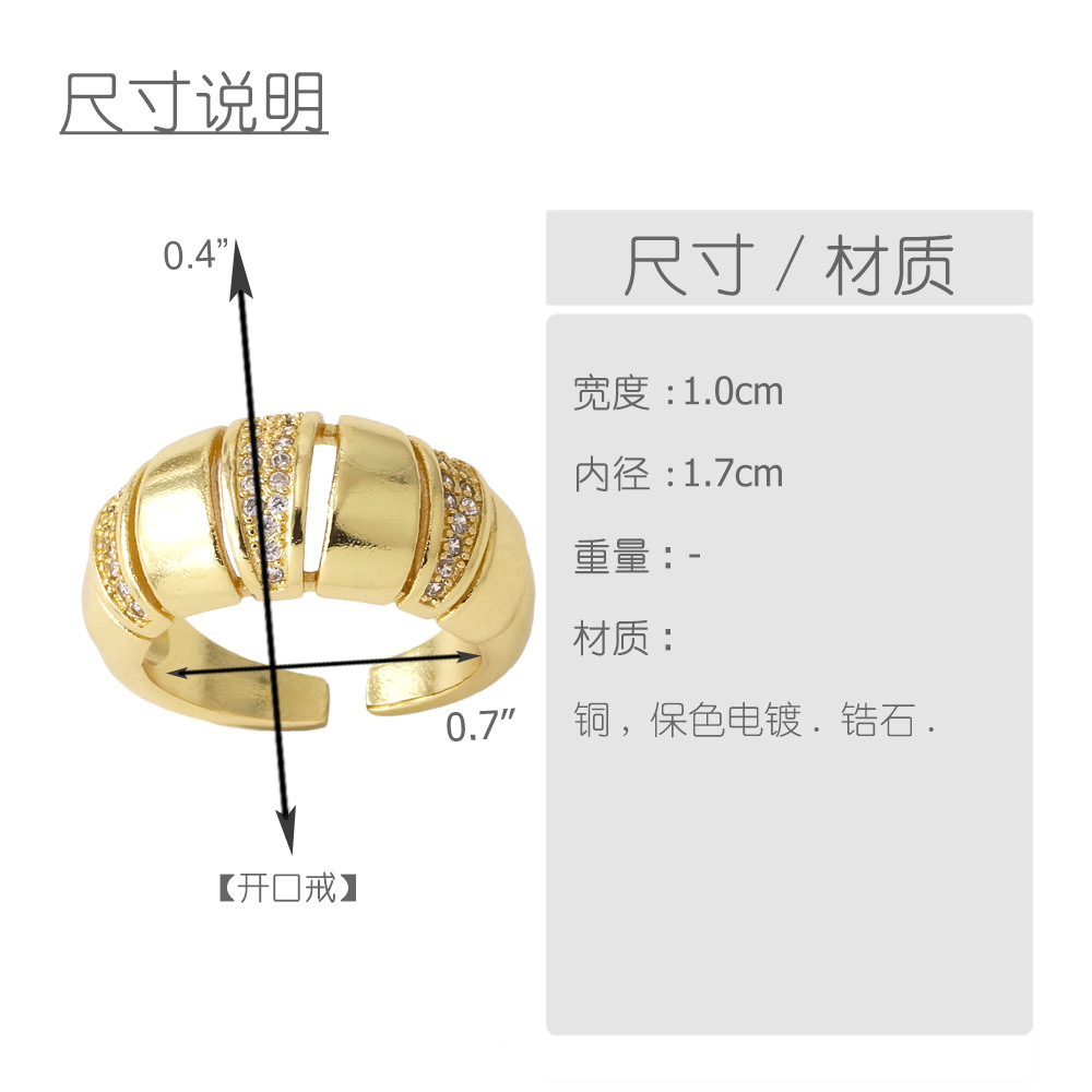 Clearance AS jewelry hollow double-layer ring copper plated real gold inlaid zircon open ring rij78