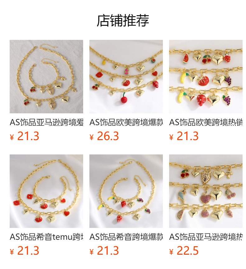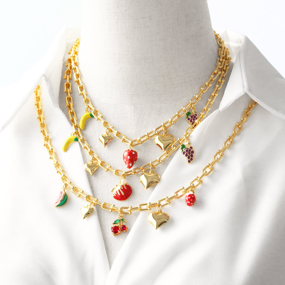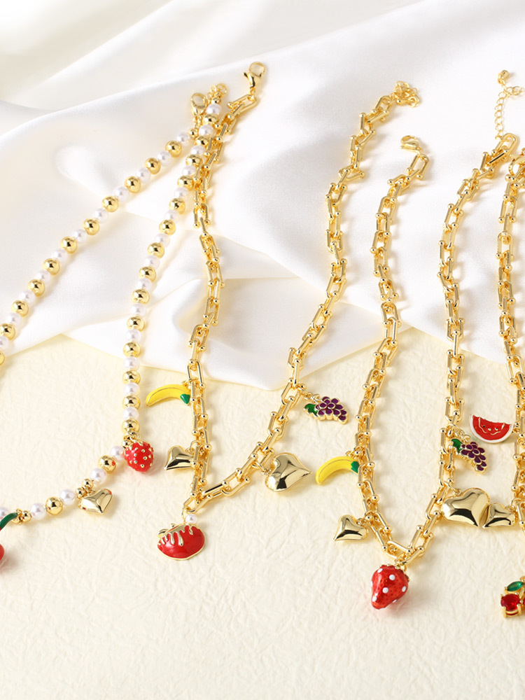Clearance AS jewelry hot sale love fruit strawberry oil drop women's gold-plated clavicle necklace nka093