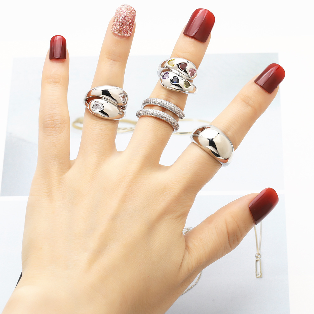 Clearance AS jewelry love colored zircon ring gold-plated geometric open ring rim77