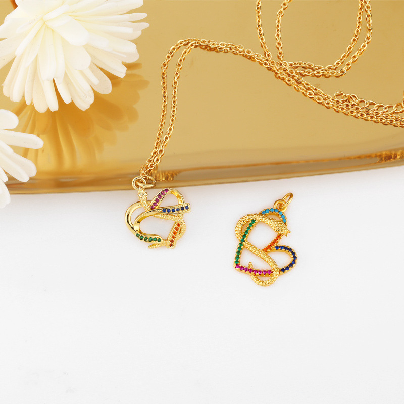 Jewelry new hot selling colored zircon 26 English letters pendant necklace gold-plated clavicle chain nku83