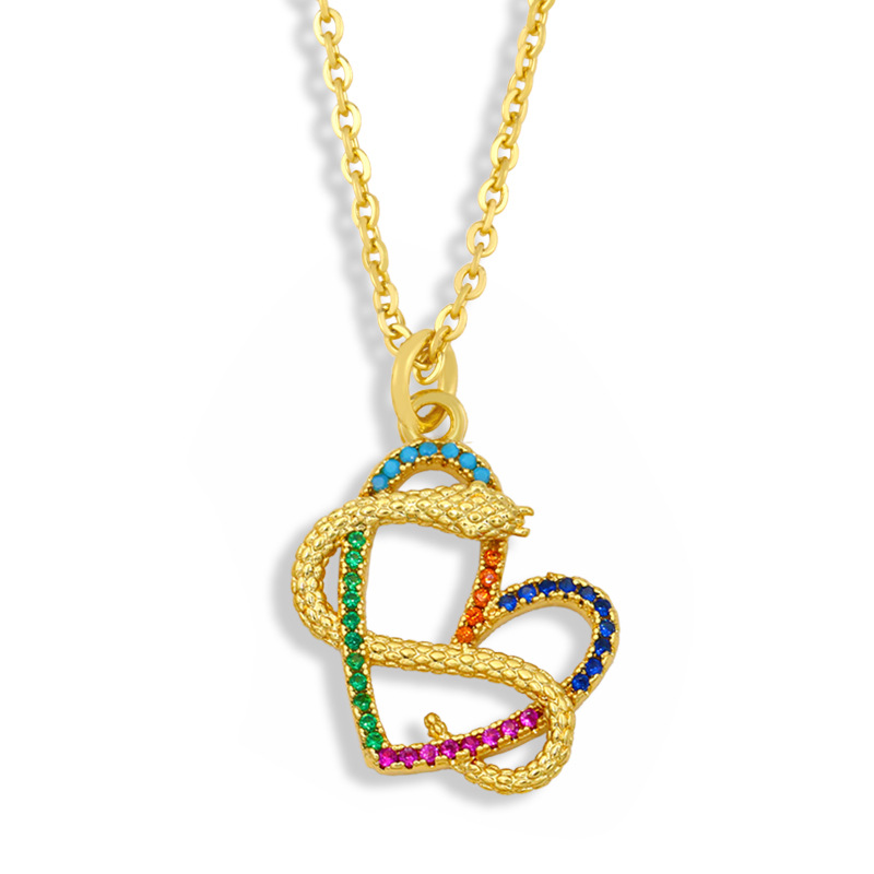 Clearance AS jewelry snake heart necklace European and American inlaid colored zircon necklace new accessories pendant nku12