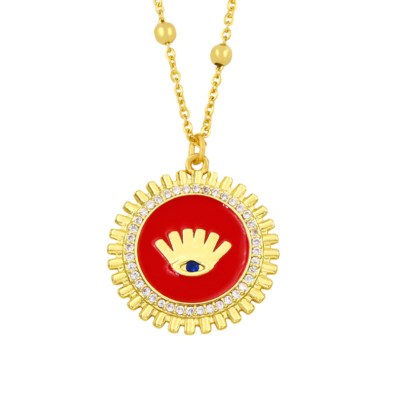 Clearance AS jewelry specializes in round plate oil drop eye pendant necklace 18K gold plated zircon necklace nkw55