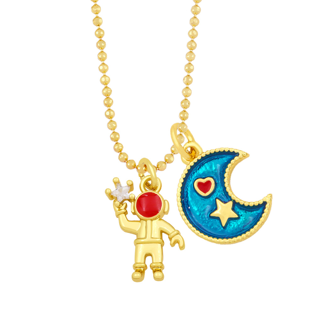 Clearance astronaut necklace female trendy all-match hip-hop personality star moon sweater chain nkz28