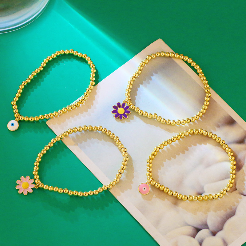 Clearance Bohemian European and American round bead elastic bracelet female eye flower daisy bracelet brd54
