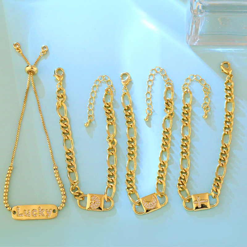 AS jewelry shopee hot selling 26 English letter bracelet glossy gold-plated DIY hand jewelry bre33