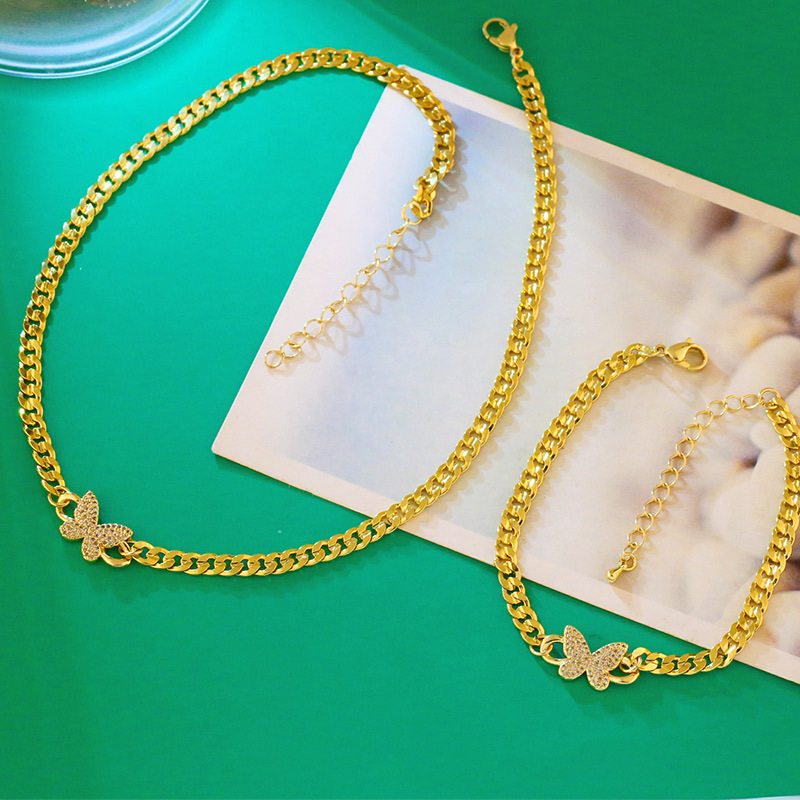 Clearance butterfly stitching Cuban necklace Korean cold style metal clavicle chain female trendy niche jewelry nkv83