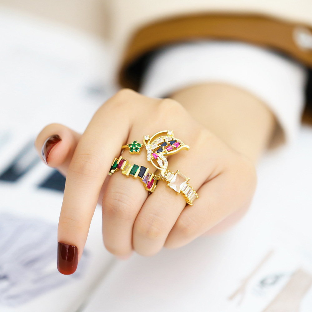 Clearance colored diamond butterfly ring female style Internet celebrity retro inlaid colored zircon irregular ring rij27