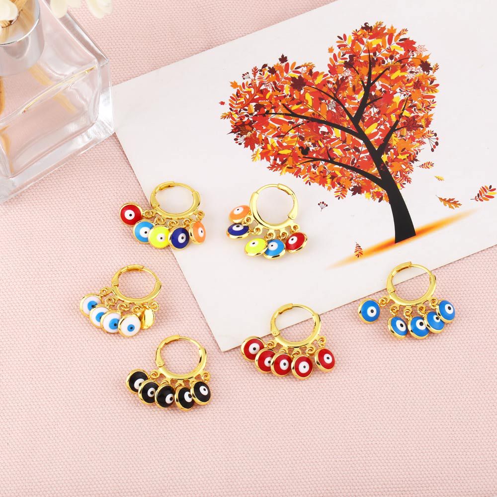 Clearance colorful oil drip tassel earrings female design European and American popular devil eye earrings ery60