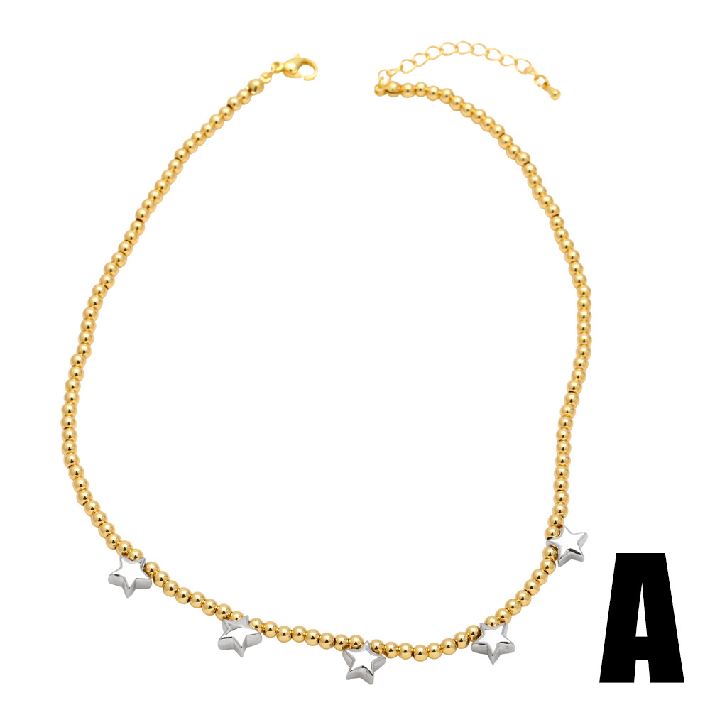 Clearance Copper Plated 18K Gold Round Bead Necklace European and American Unisex Style Personalized Love Five-pointed Star Clavicle Chain nkb045
