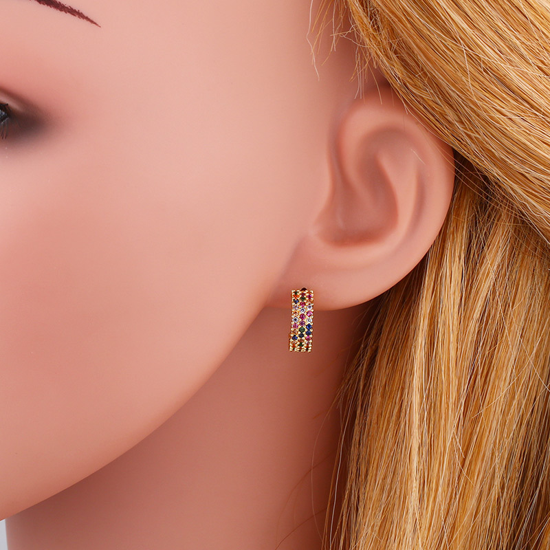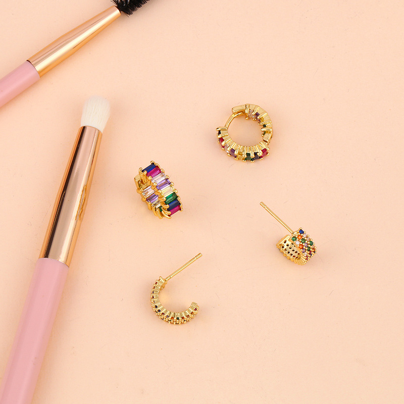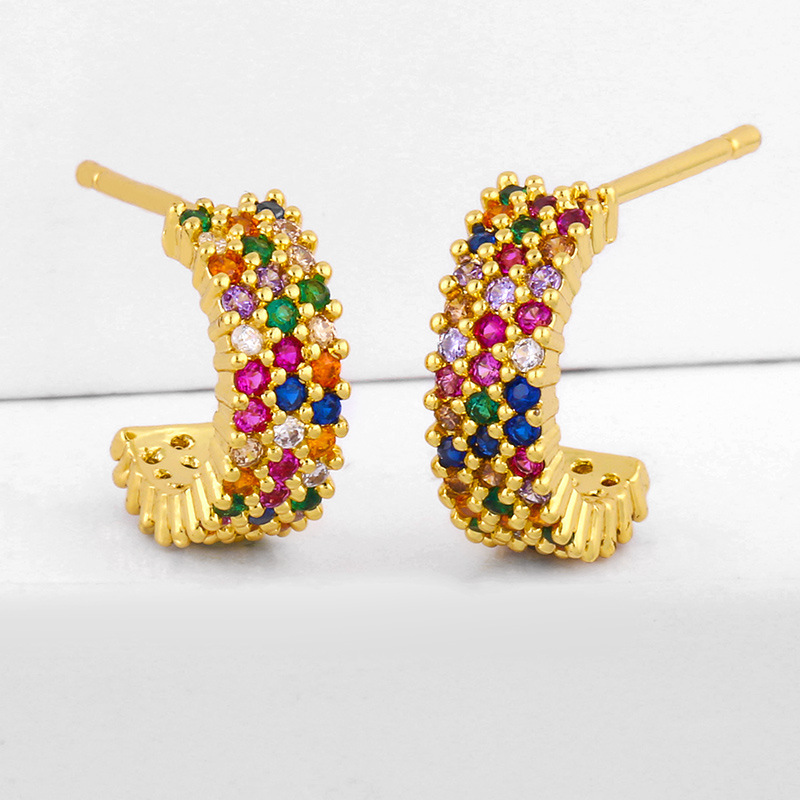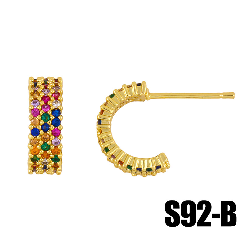 Clearance creative color zircon round earrings geometric C-shaped earrings electroplated copper micro-inlaid color zircon earrings ers92