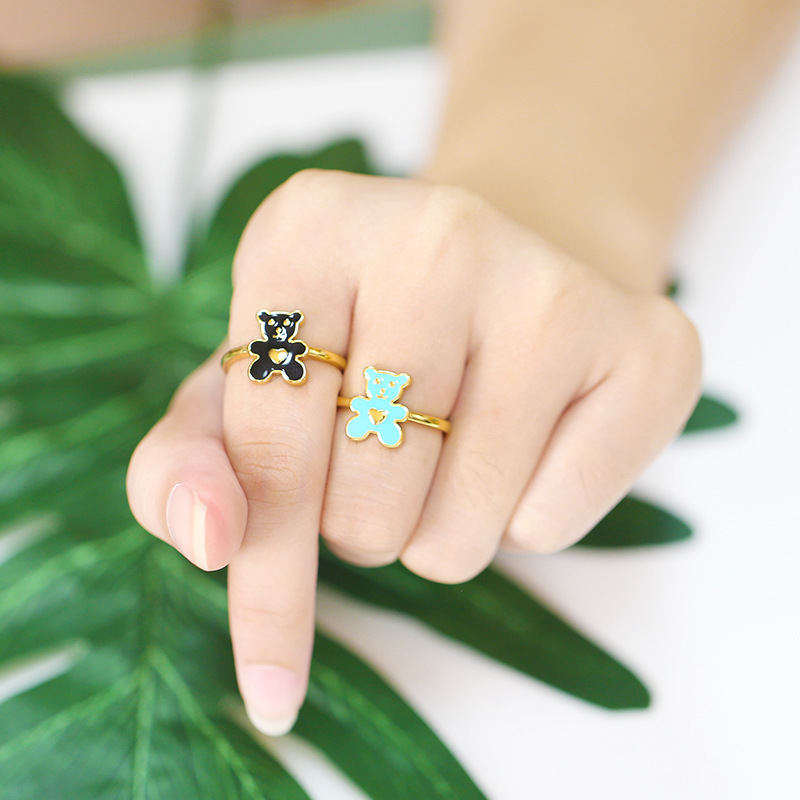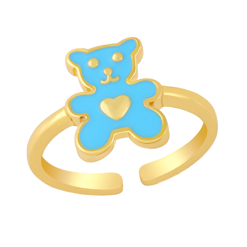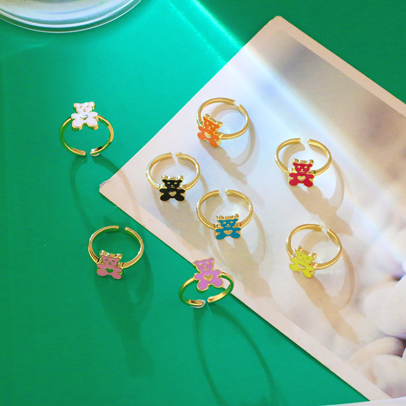 Clearance cute love bear ring European and American INS style color drop oil ring girl style jewelry rim58