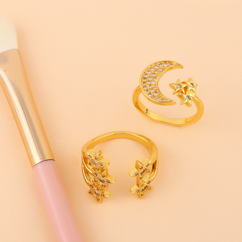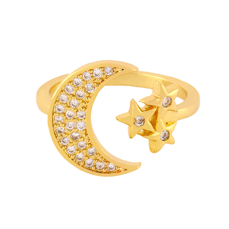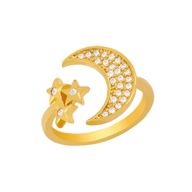 Clearance e-commerce creative diamond ring female European and American style star moon open ring wholesale rij54