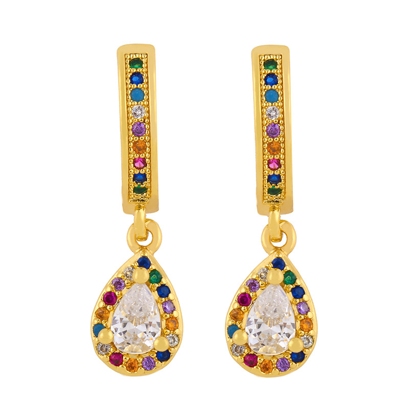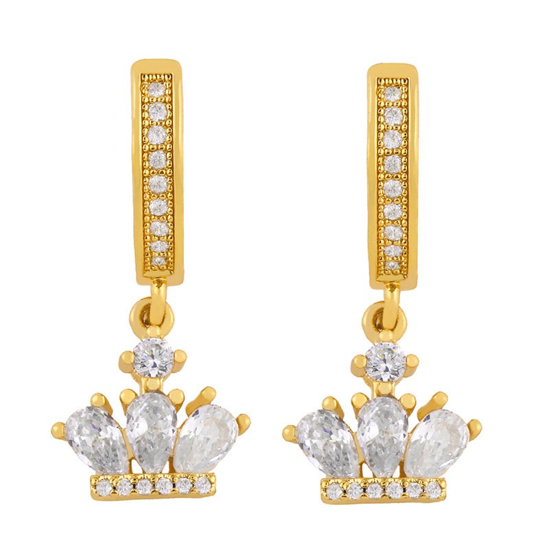 Clearance earrings European and American earrings crown diamond earrings micro inlaid colored zircon water drop earrings eru86