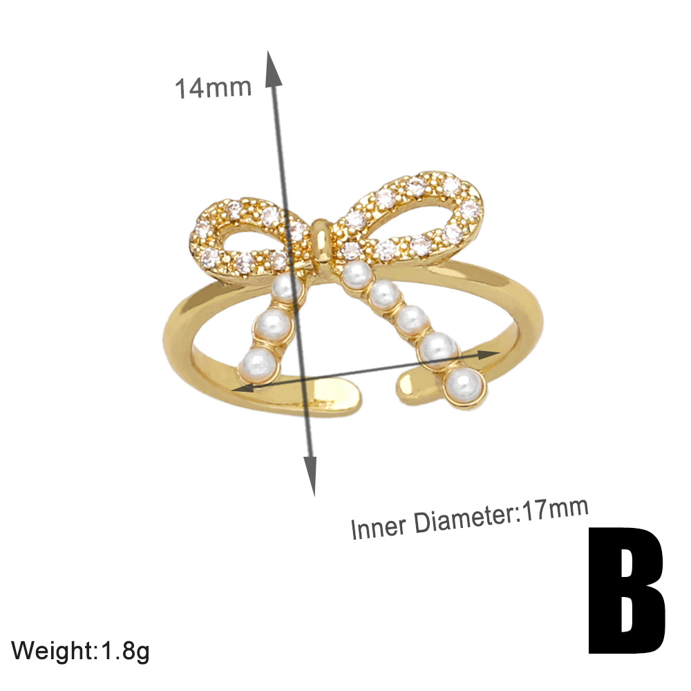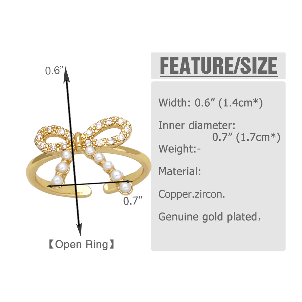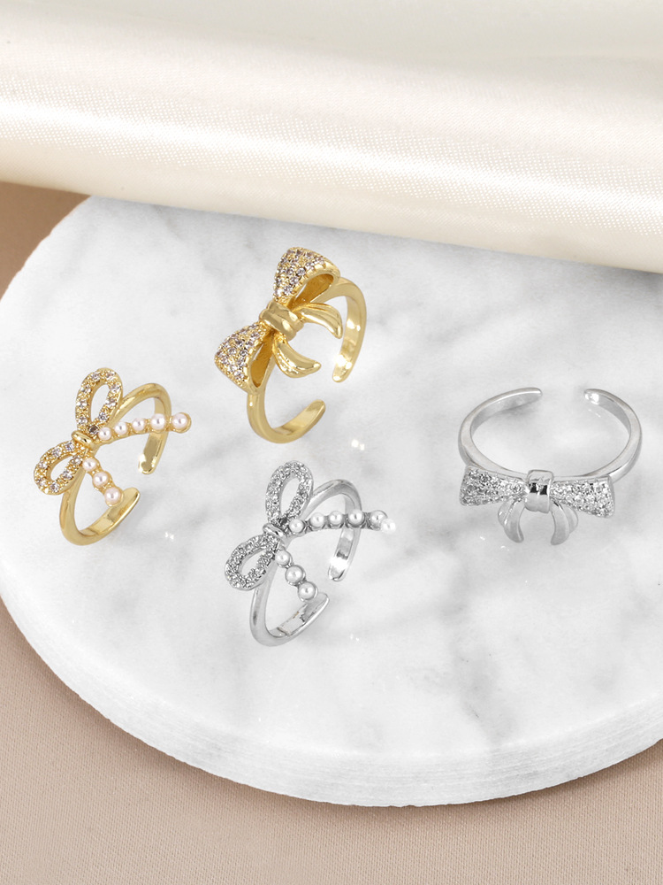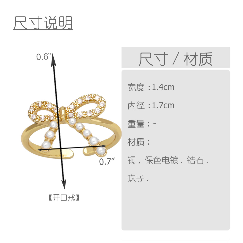 Clearance Europe and the United States hot sale bow ring women's light luxury inlaid zircon gold-plated pearl ring ring rin01